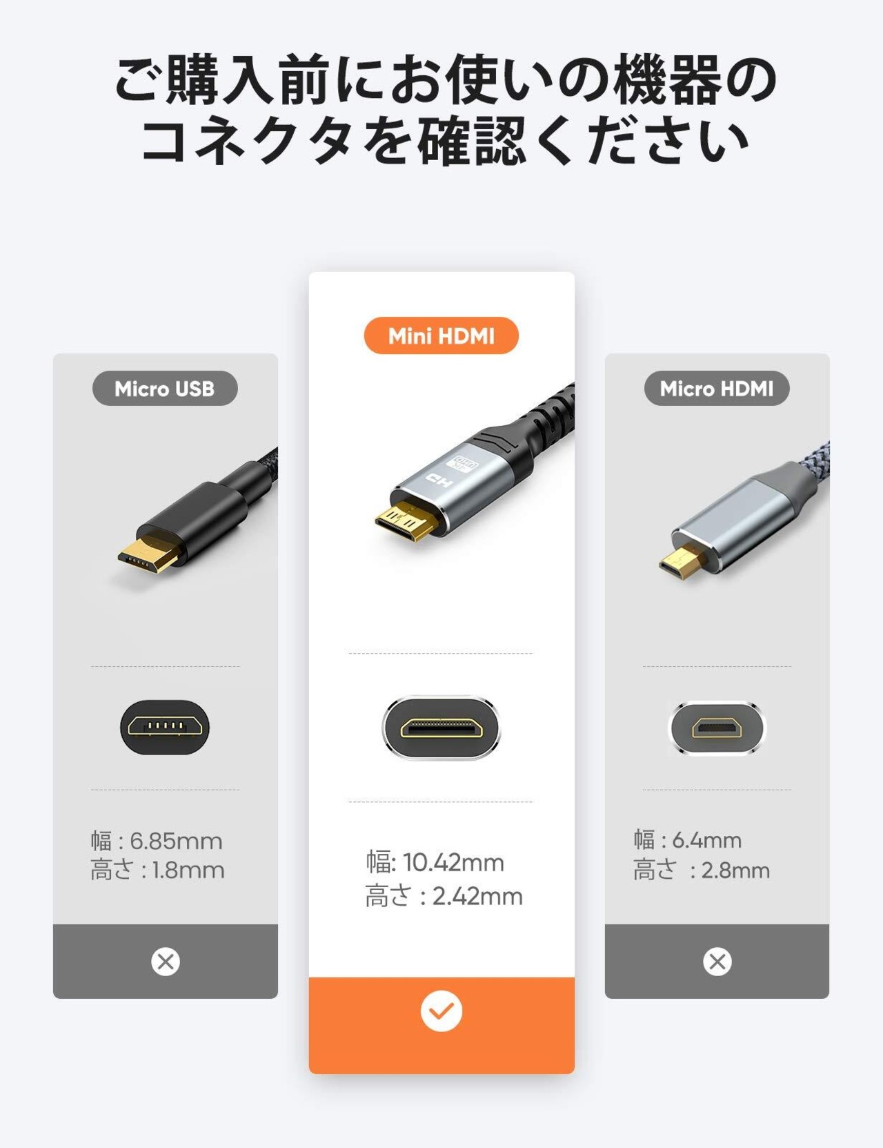 HDMI 2.0規格:Mini HDMI ケーブルはHDR・イーサネット双方向転送・フルHD・3D映像・ARC(オーディオリターンチャンネル)に対応しています。最大帯域幅18Gbpsをサポートし、映像信号と音声信号を高速伝送できます。