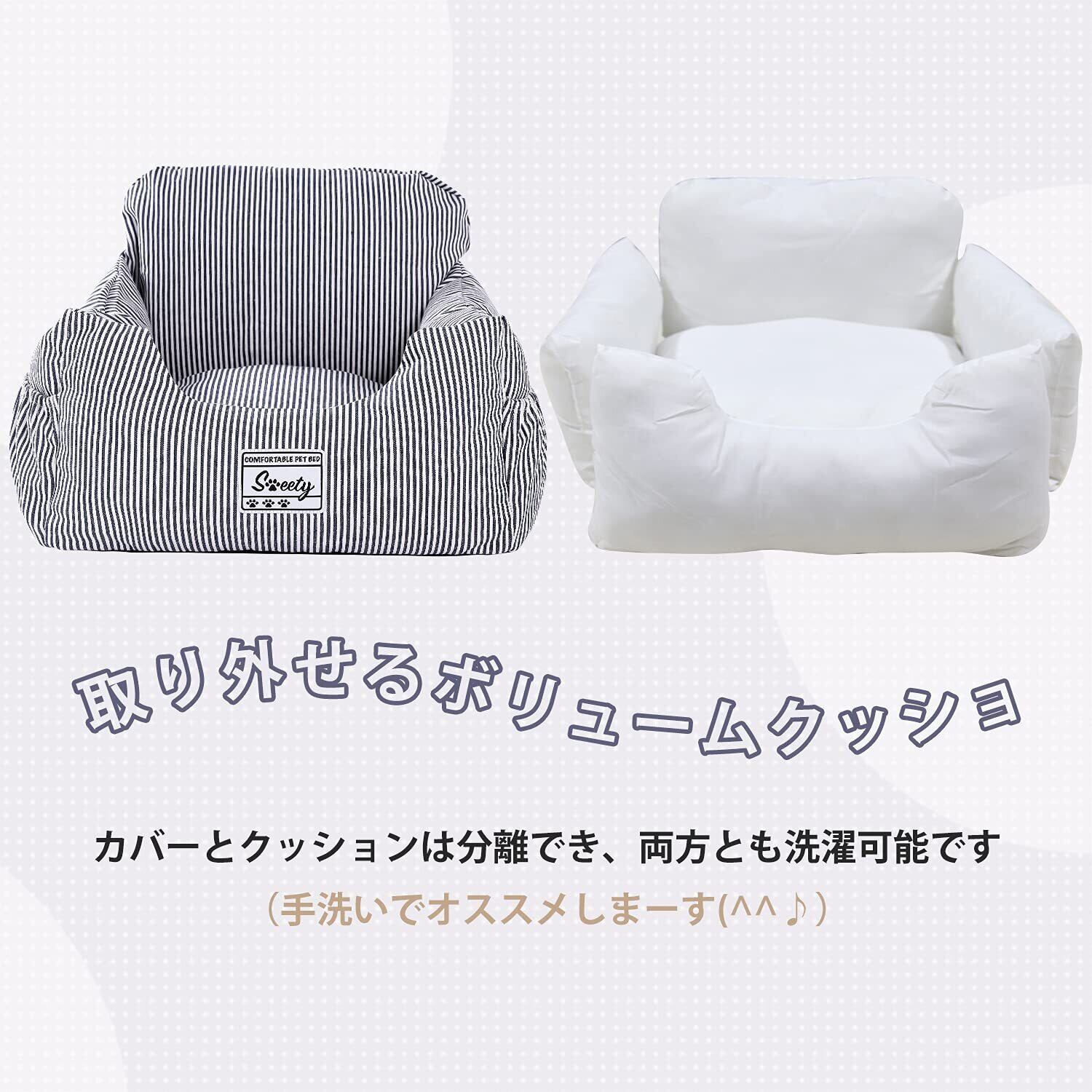 【室内と車内両用ベッド】Mサイズ:50×45×35cm////Lサイズ:55×45×35cm。室内におけばソファー、車の座席におけばドライブベッド!ご自宅も旅行先もペットちゃんが楽しんで満喫できます!
