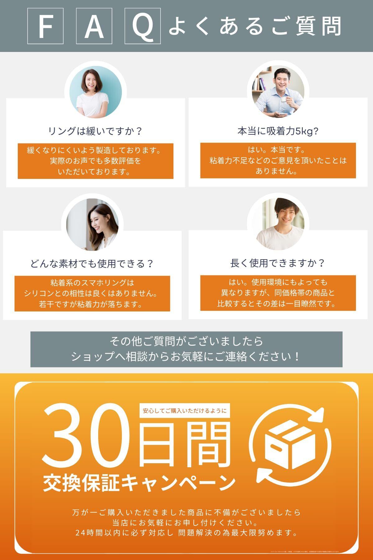 【 リングの強度最強 】このスマホリングはリングがゆるゆる、携帯が立てかけられないなどのお声をよく見かけるため、リングの強度を最大限まで硬くし、徐々に馴染むような作りとしております。使用始めは硬いと感じられるかと思いますが使っていくうちに柔らかくなってきますので予めご了承ください。