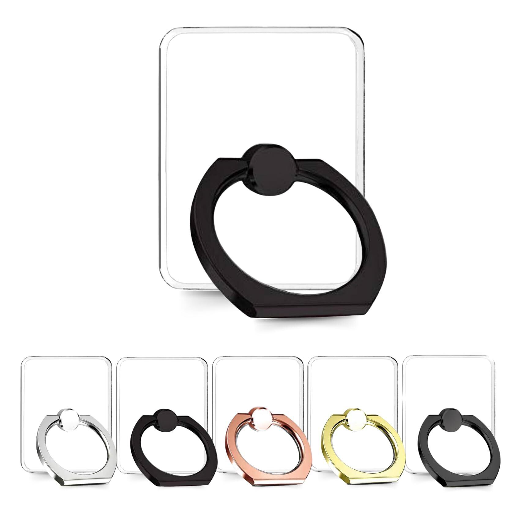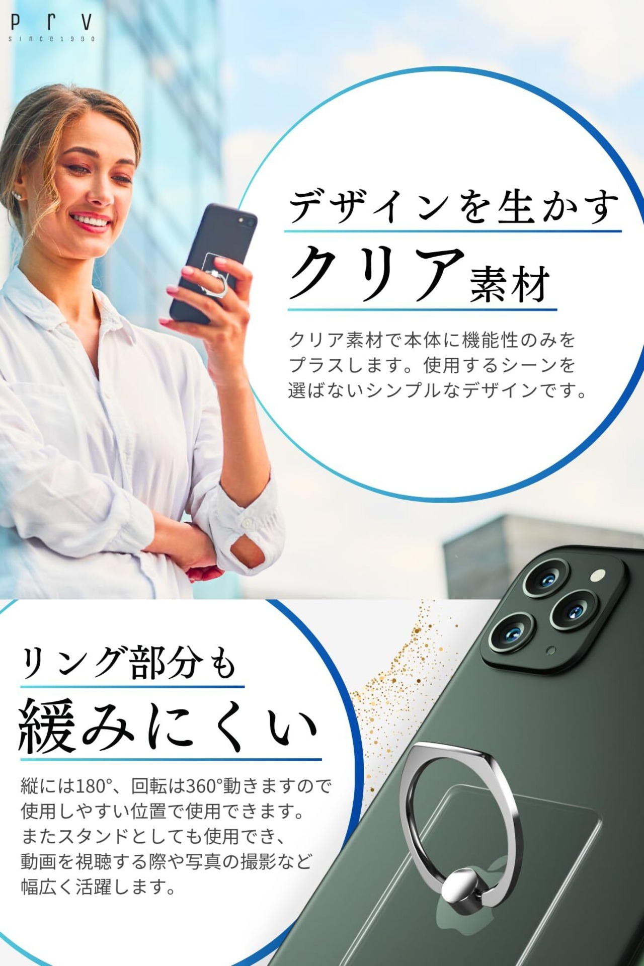 Prv【 雑誌掲載商品! 粘着重量5kg スマホリング クリア 】 粘着力最強 3Mテープ バンカーリング 緩くなりにくい リング強度最強 透明 薄型 ホールドリング 落下防止リング スタンド機能 タブレットリング 360回転 車 お風呂のフックにも使用可能 使い方は無限大 強力粘着テープ付き (スクエア/ブラック)