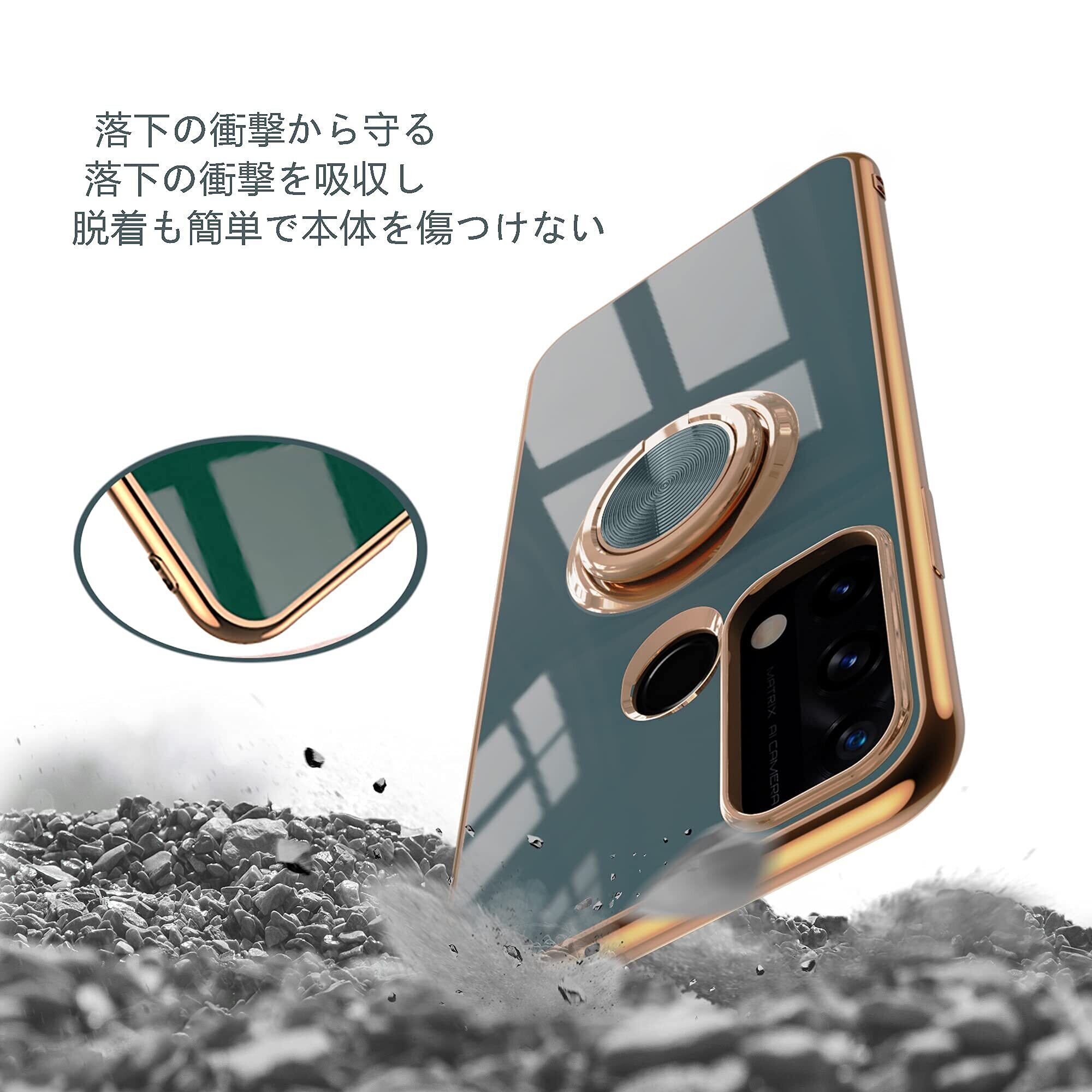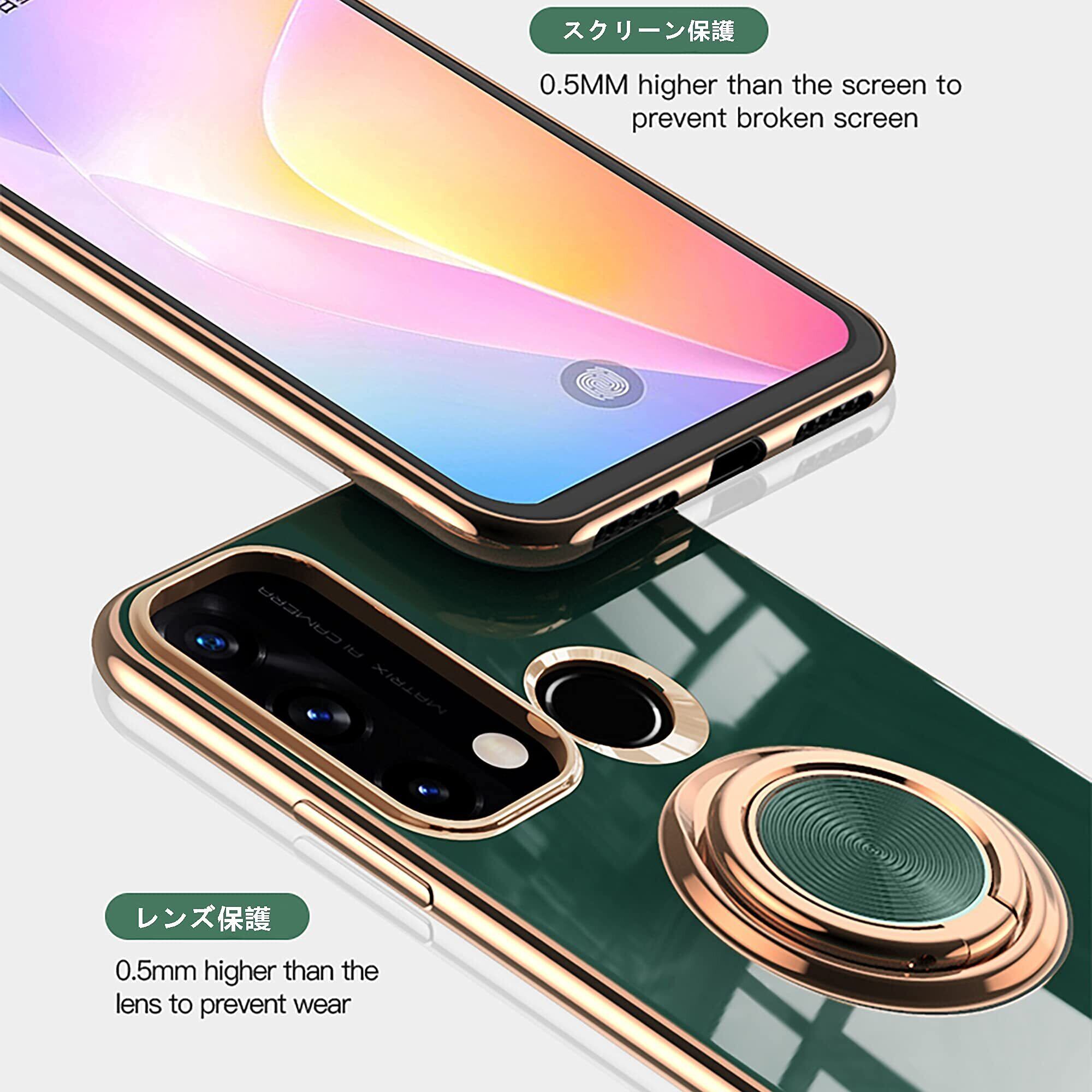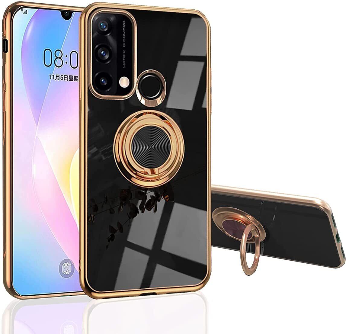 OPPO Reno5 A ケース リング付き [DINGXIN] reno5 a 耐衝撃 軽量 薄型 TPU マグネット式 車載ホルダー対応 オッポ リノ5 a メッキ加工 (ブラック)