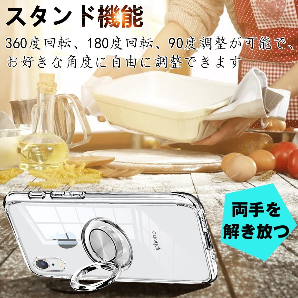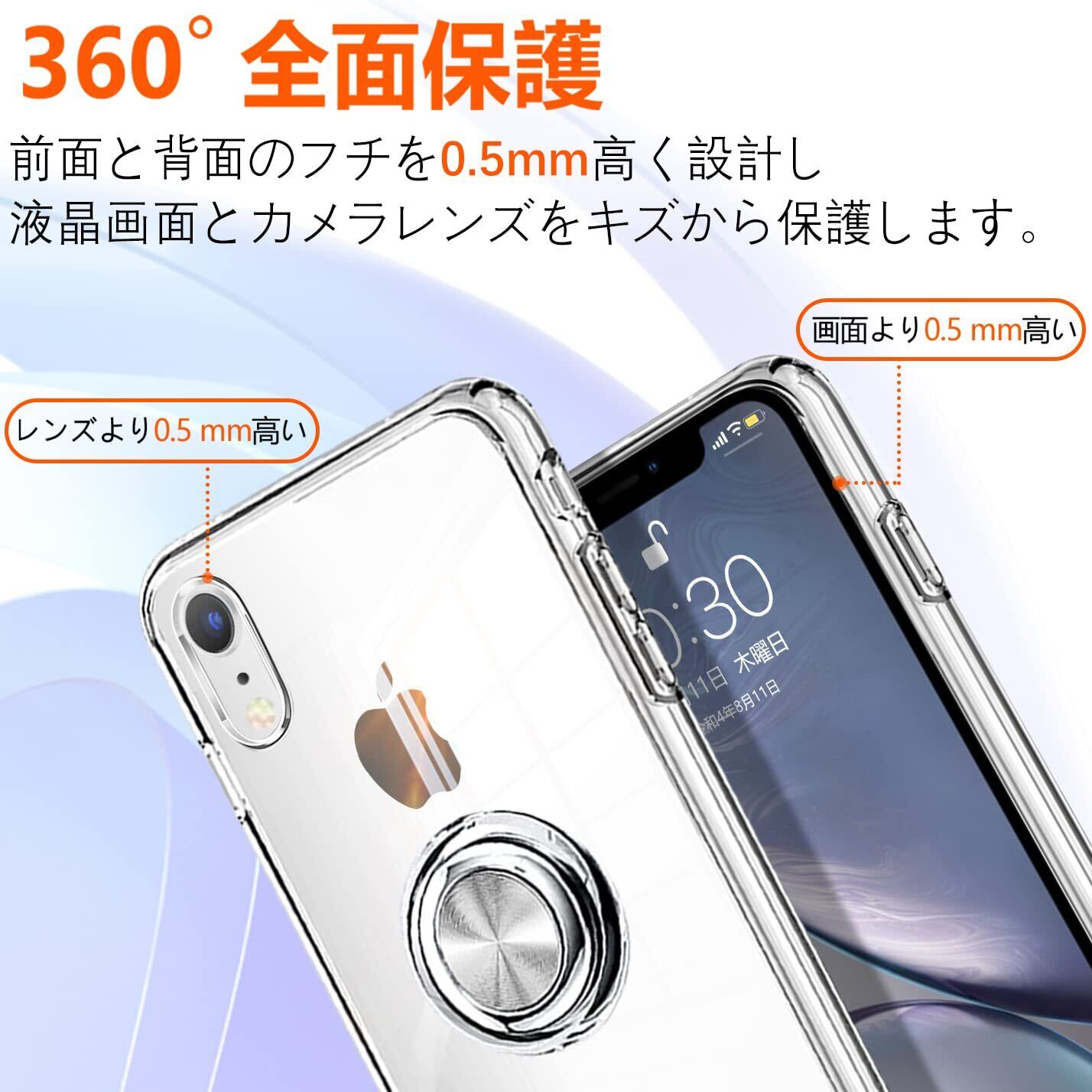 fusinong iPhone XR ケース リング付き クリア アイフォンxr カバー リング 透明 耐衝撃 全面保護 薄型 軽量 メッキ加工 TPU 磁気カーマウントホルダー 360回転 車載ホルダー対応 クリアケース