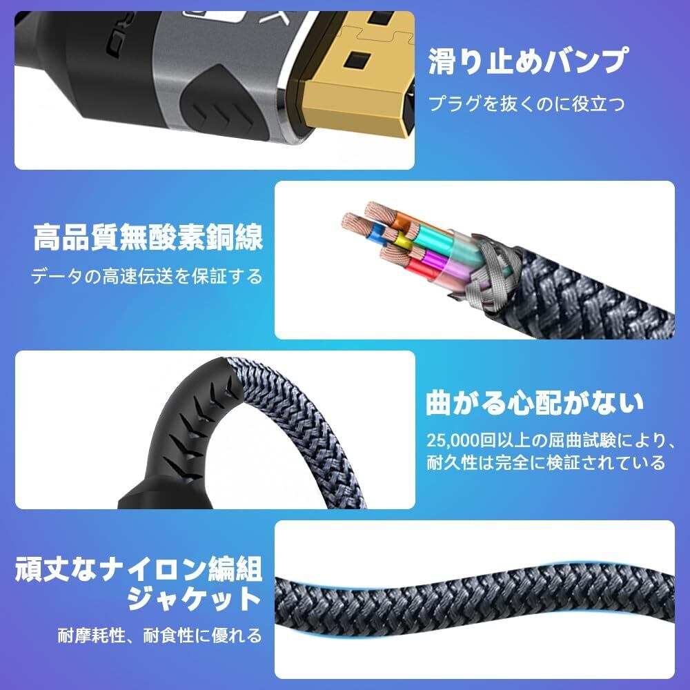 ディスプレイポート ケーブル 1.4は、耐食性の金メッキコネクタ、純銅導体、アルミホイル編組シールドの組み合わせを採用し、トリプルシールドを実現し、ケーブル性能を向上させ、エラーのないデータ伝送を実現します。酸化による信号劣化を心配する必要はありません。長期間使用します。dpケーブルのジャケットはナイロン編組素材でできているため、DPケーブルは耐久性があり、柔らかく、環境にやさしいです。