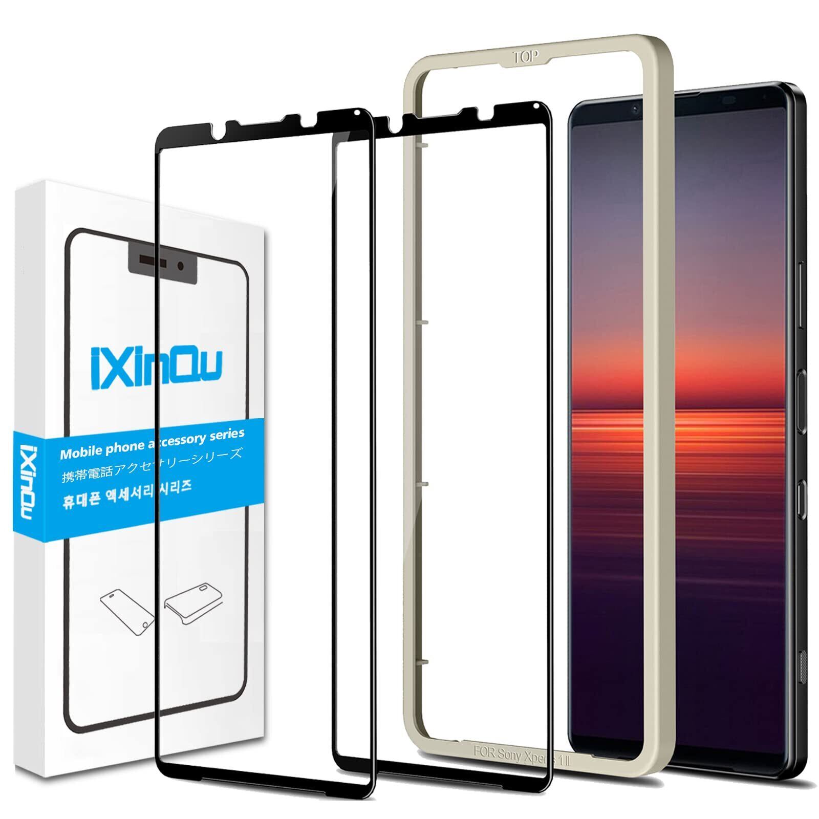 iXinQu【全面保護】ガラスフィルム Xperia 1 II 用 2枚入 SOG01 SO-51A 強化 ガラス 硬度9H 日本旭硝子素材製 ガイド枠付き 貼り付けが簡 ソニーエクスペリア 1 II専用 液晶 保護 フィルム フルカバー 6.5インチ