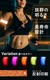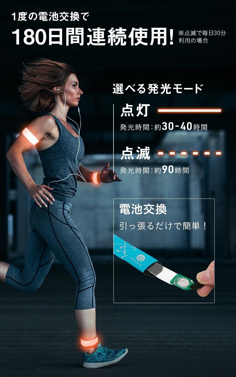 RUN-MARKER 電池式 LED アームバンド 反射バンド 点灯 点滅 片手装着 ランニング 安全 ライト 反射板 蛍光 夜間 ウォーキング サイクリング ジョギング 反射材 バイク 自転車 裾バンド