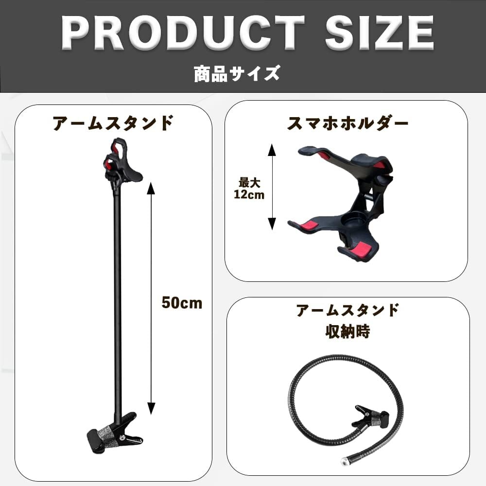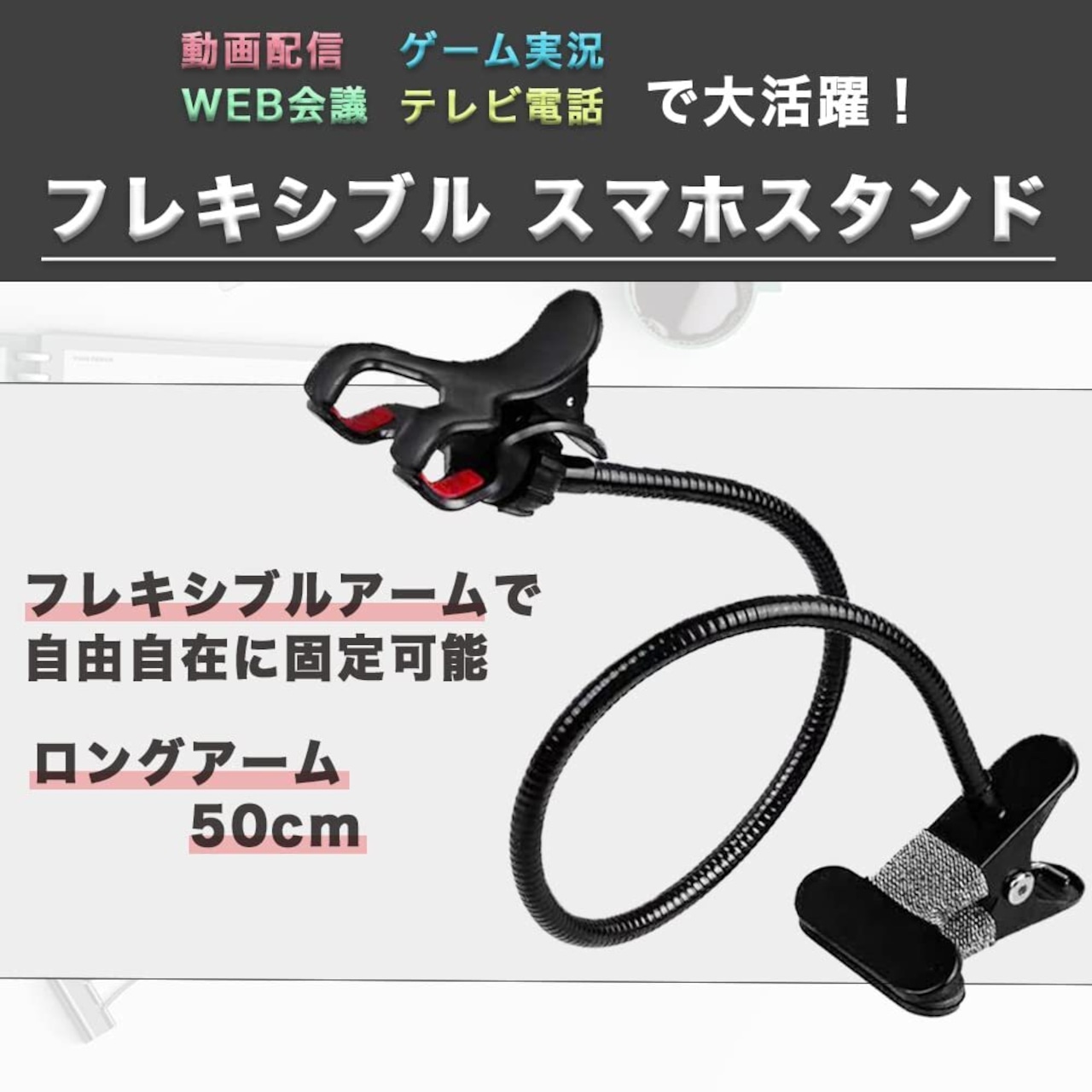 AZNABLE スマホスタンド アーム クリップ ホルダー フレキシブルアーム スマホホルダー 50cm (ブラック)