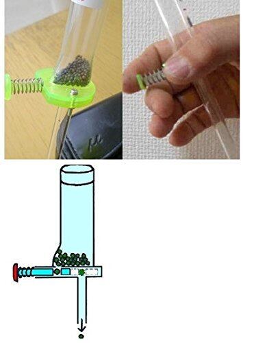 タネポンは指でつまみにくい小さな種まきのために作られた器具です。種の落ちる穴の大きさが約2ミリあります。2ミリより小さくて、1.6ミリぐらいまでの球形の種まき用の器具です。キャベツ、白菜、菜類、小松菜、カブ、チンゲンサイ、ブロッコリー、カリフラワーなどの種まきに利用できます。(ごみやほこりなどは、分解して、取り除いてください。種の形状や大きさなどによっては合わない場合があります。 1粒用、2粒用の部品が入っています。本体のネジをゆるめて交換してご使用下さい。