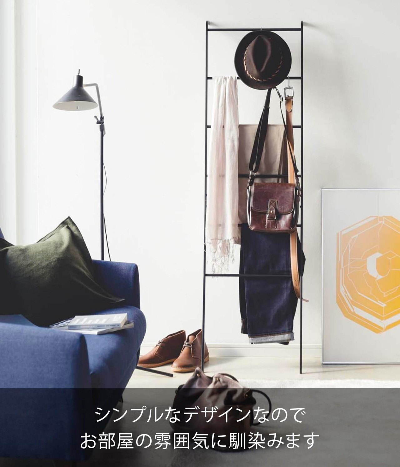 スカーフやズボンの一時掛けにも便利な立て掛けラダーハンガー