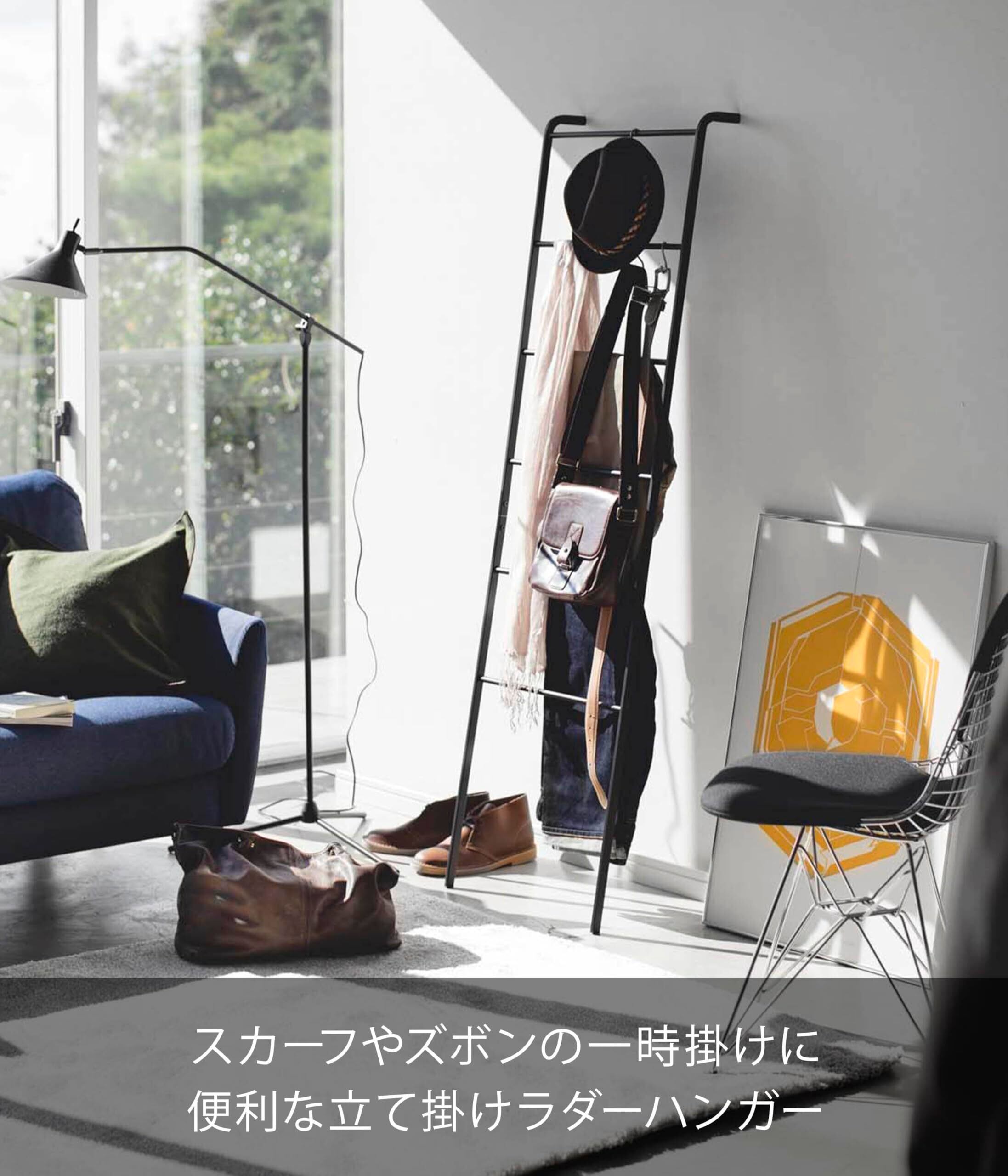 山崎実業 立て掛け収納ラック ハンガーラック はしご ラダーハンガー フレーム ブラック 3964