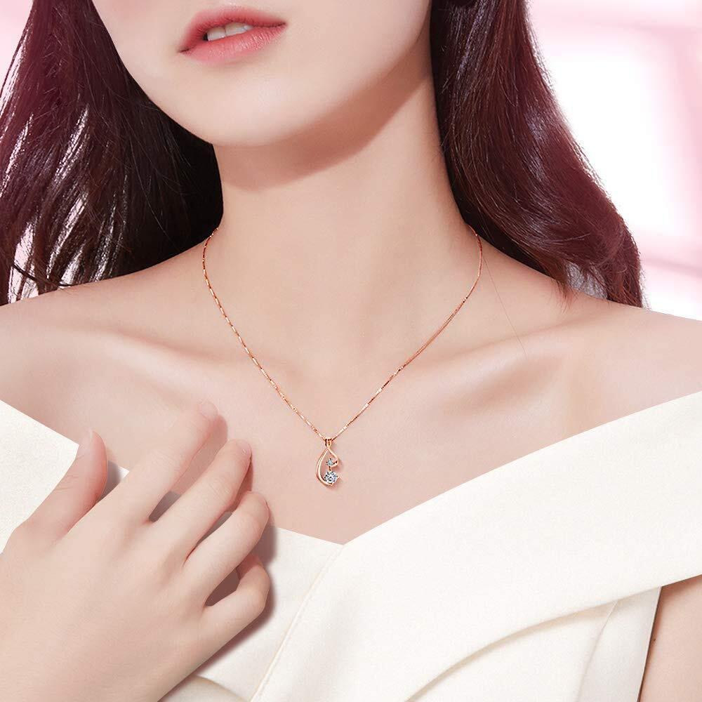 【商品仕樣】ネックレスペンダントサイズ:(横)9mm×(縦)17mm。ネックレスチェーン長さ:40 + 5cm(長さ調整可能)。メインストーン:最高級ジルコニア。金属アレルギー対応ネックレスはシルバー925を採用します、シルバーネックレスレディースはピンクゴルードメッキ加工を施しております。快適が装着で、汗をかいてもかゆくならない、安心して楽しめるレディースジュエリー。