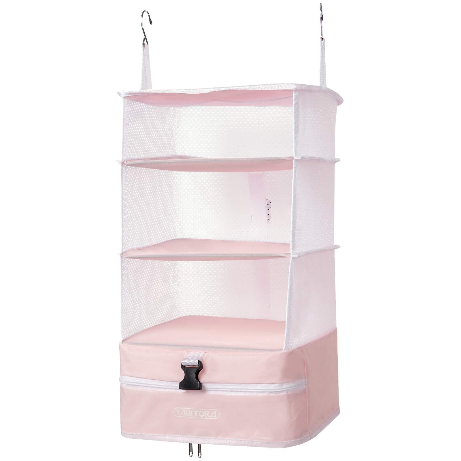 TABITORA(タビトラ) クローゼット吊り下げ収納 インナーバッグ 衣類ラック 収納 旅行 出張 クローゼット 収納ボックス 吊り下げ 省スペース 大容量 衣装ケース 4段 取付簡単 折り畳み式 ピンクL