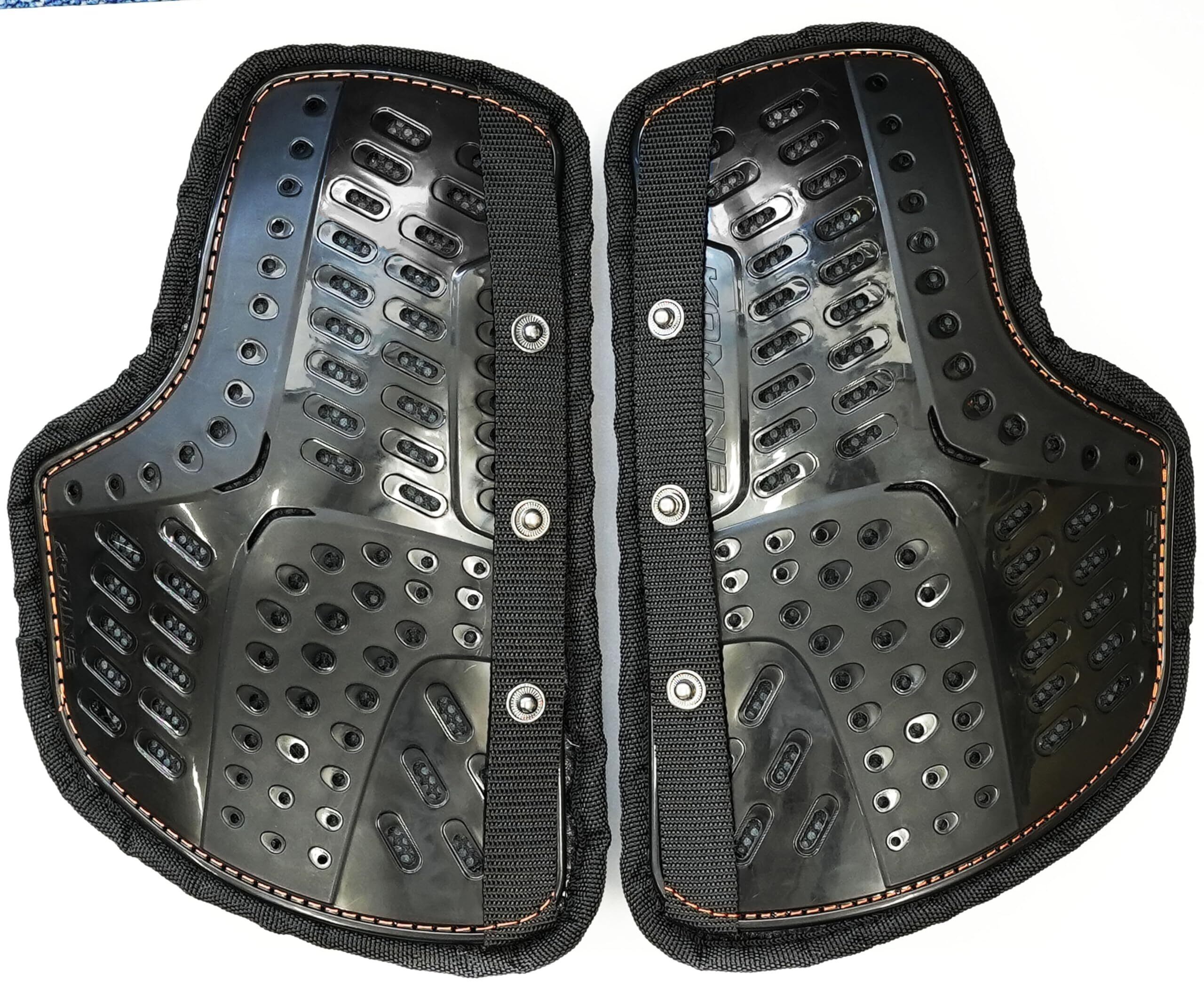 SK-839を他社製ジャケットにも装着可能にした、CE規格レベル2認証取得した分割型のインナーチェストプロテクター。胸部プロテクターをスナップボタンで装着するジャケットに対応。