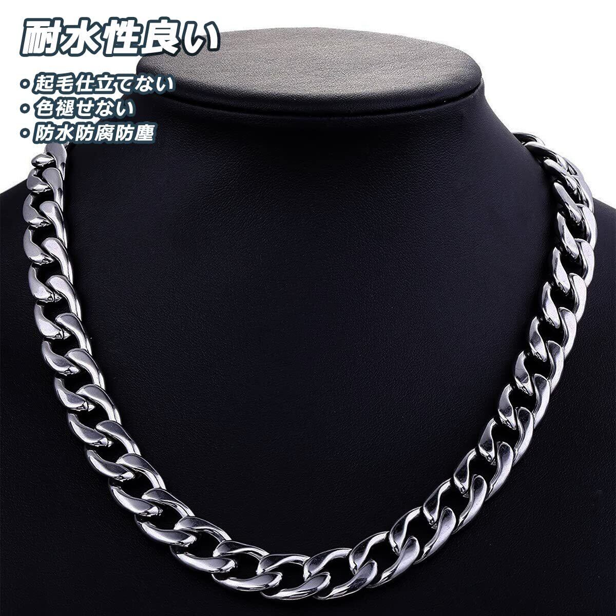 【サイズ感】チェインの太さは5mm、長さは60cmで、留め金具は引き輪タイプで、金具が使いやすく、強度と太さもOK。シンプルなコーデにネックレスを主役にさせることで、よりあか抜けた雰囲気に。丁度いいサイズ感、日常の服によく合わせます。