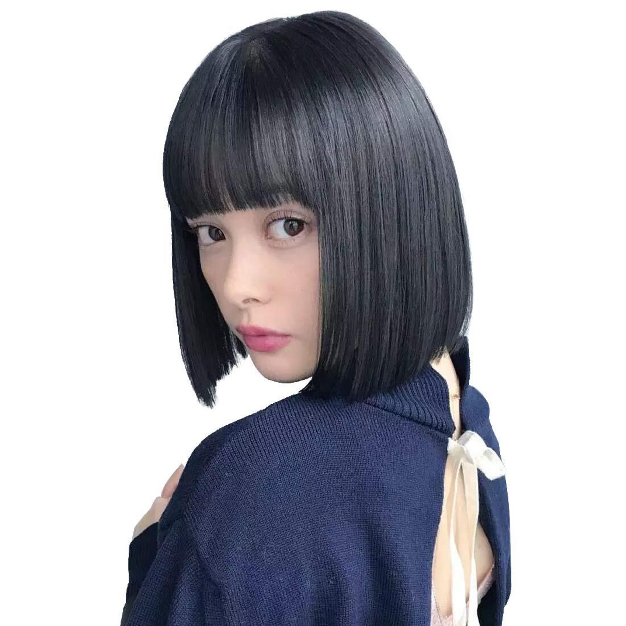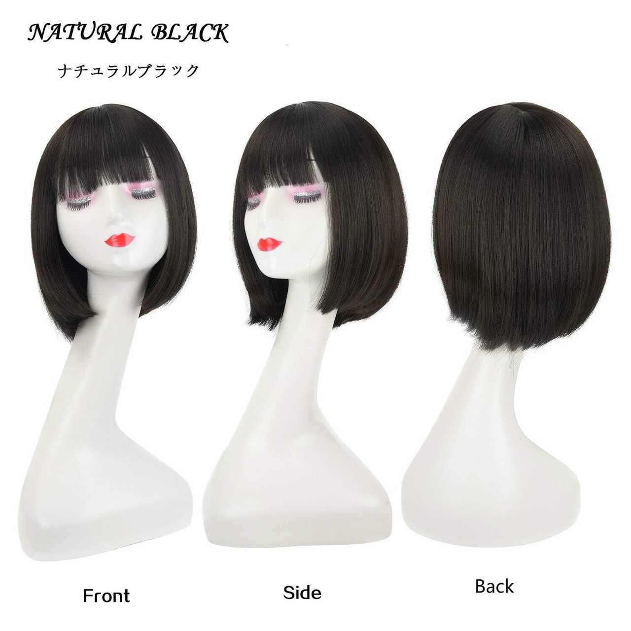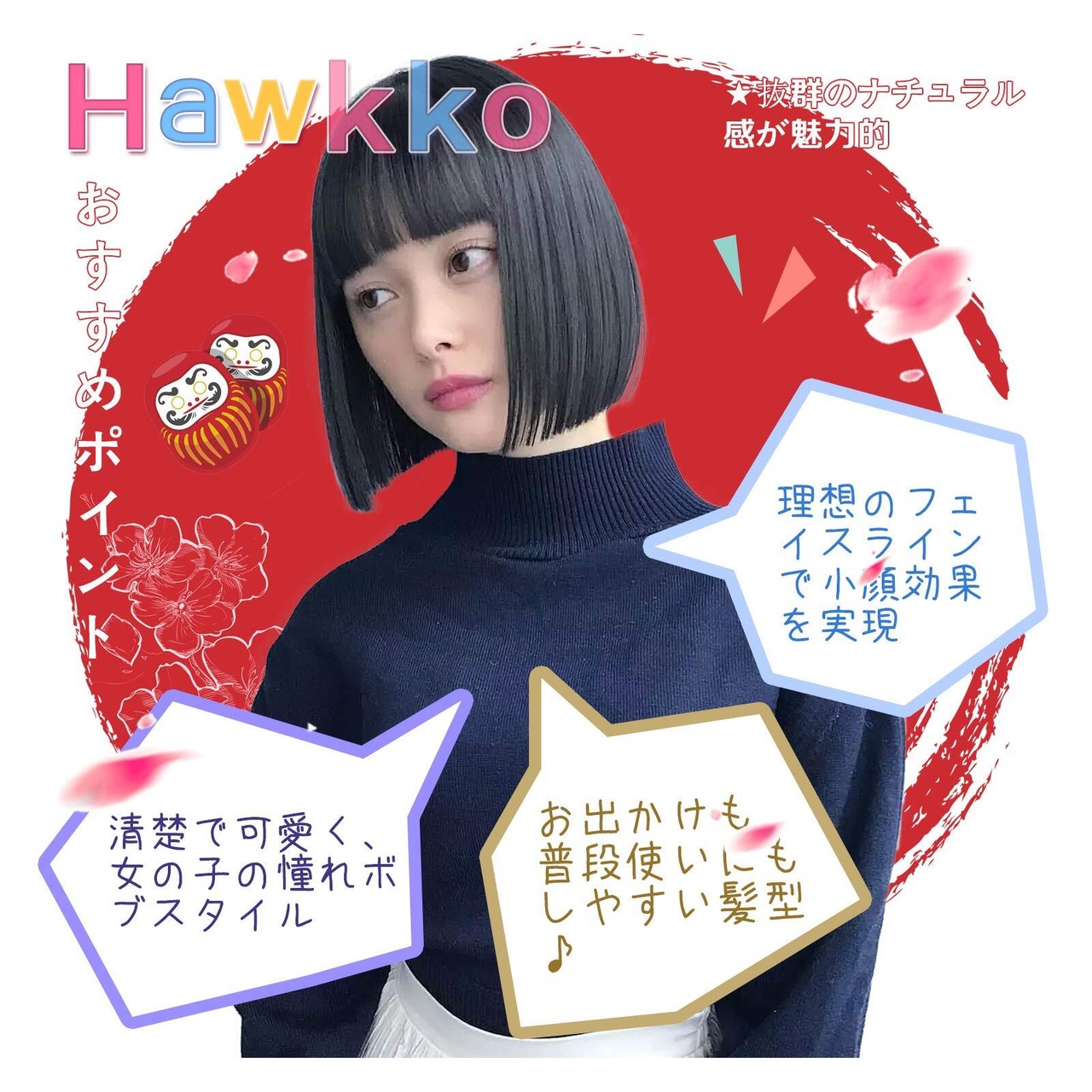 Hawkko ウィッグ ボブ ショート レディース wig かつら ストレート セミロング カール さらさら セミロング ファッション フルウイッグ 小顔 おしゃれ 可愛い 自然 大人 原宿 耐熱 ネット/櫛付(ナチュラルブラック)
