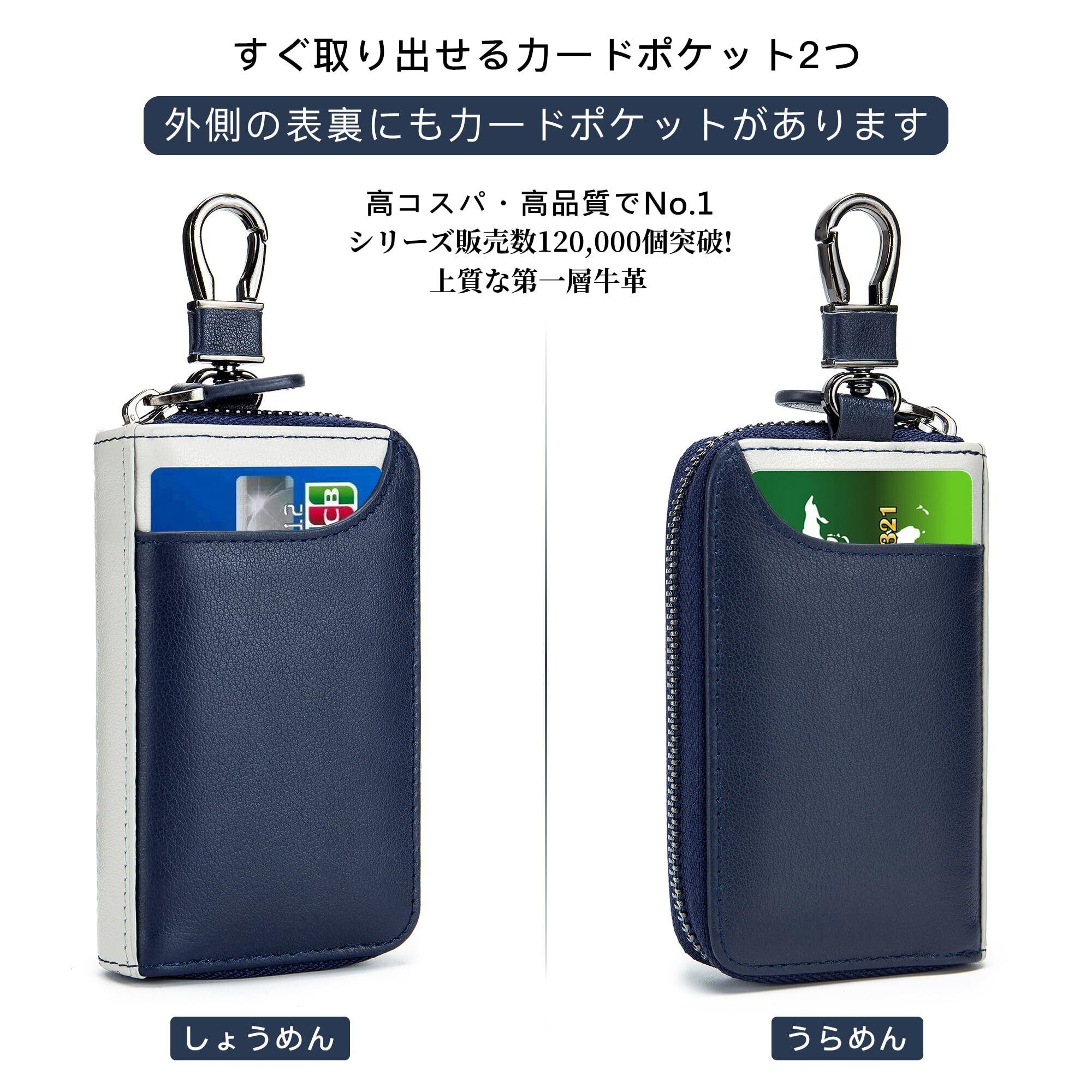 [MBOYU] キーケース メンズ 本革 2つ外側ポケット icカード 免許証 定期入れ スマートキーケース 車 バイク 鍵 収納 パスケース 6連 カラビナ 一体型 大きめ ファスナー おしゃれ シンプル プレゼント