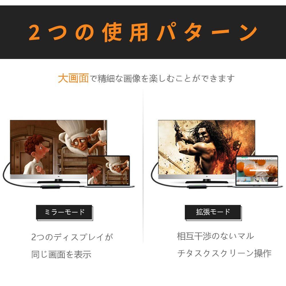 【ミラー&拡張モード&プラグ·プレイ】: 金メッキのインターフェースとトリプルシールドケーブルが採用されています。拡張モードでは、ラップトップで複数のタスクを同時に表示することができます。ミラーモードでは、ラップトップの画面を大画面で視覚的に楽しむことができます。