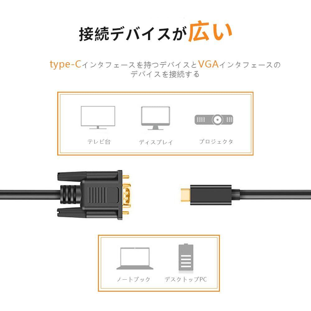 【多機能な接続】: USB Type Cポートが搭載されたパソコンをVGA入力が搭載のモニターに接続できるUSB C VGA変換ケーブルです。デバイスの画面を拡張したり、複製したりすることができます。