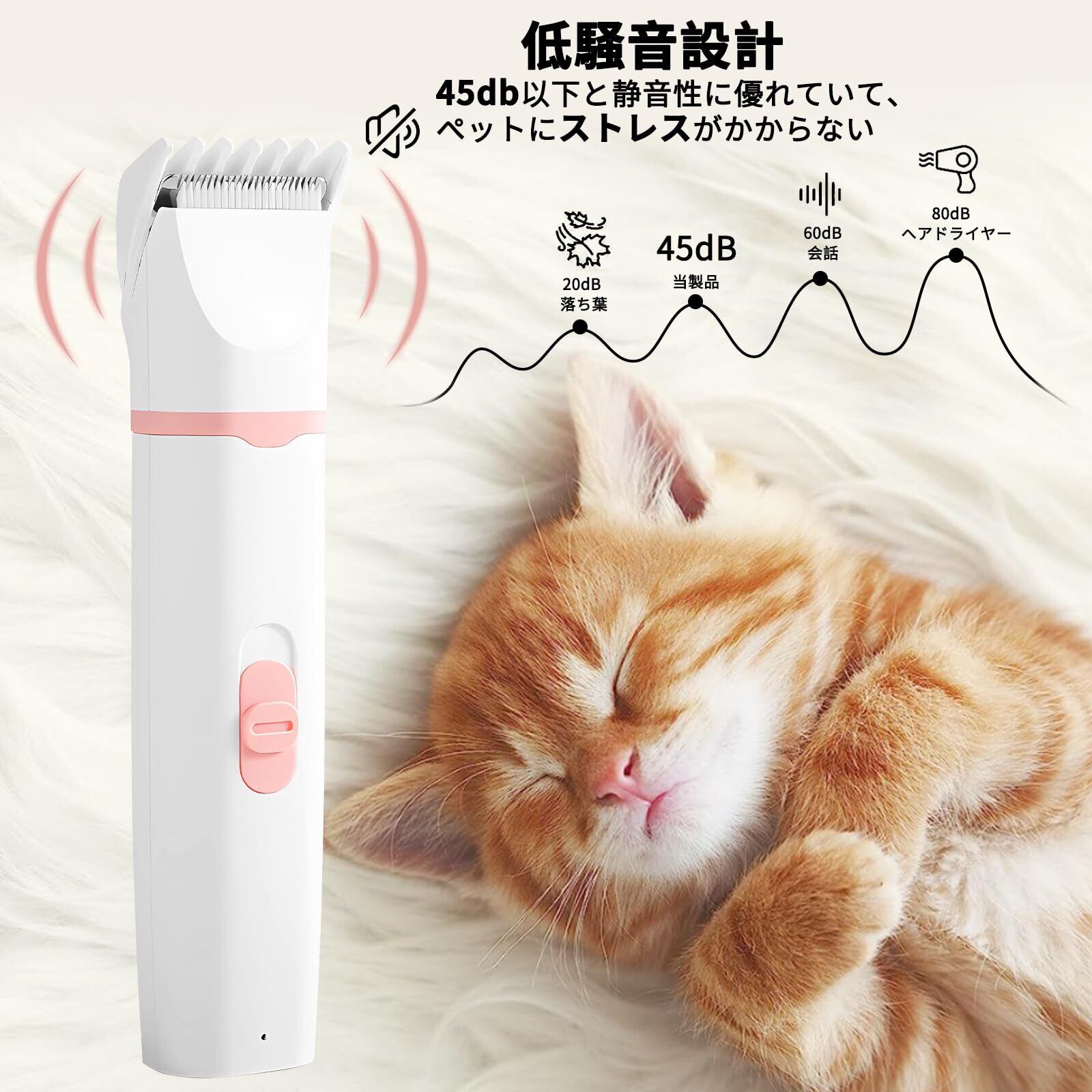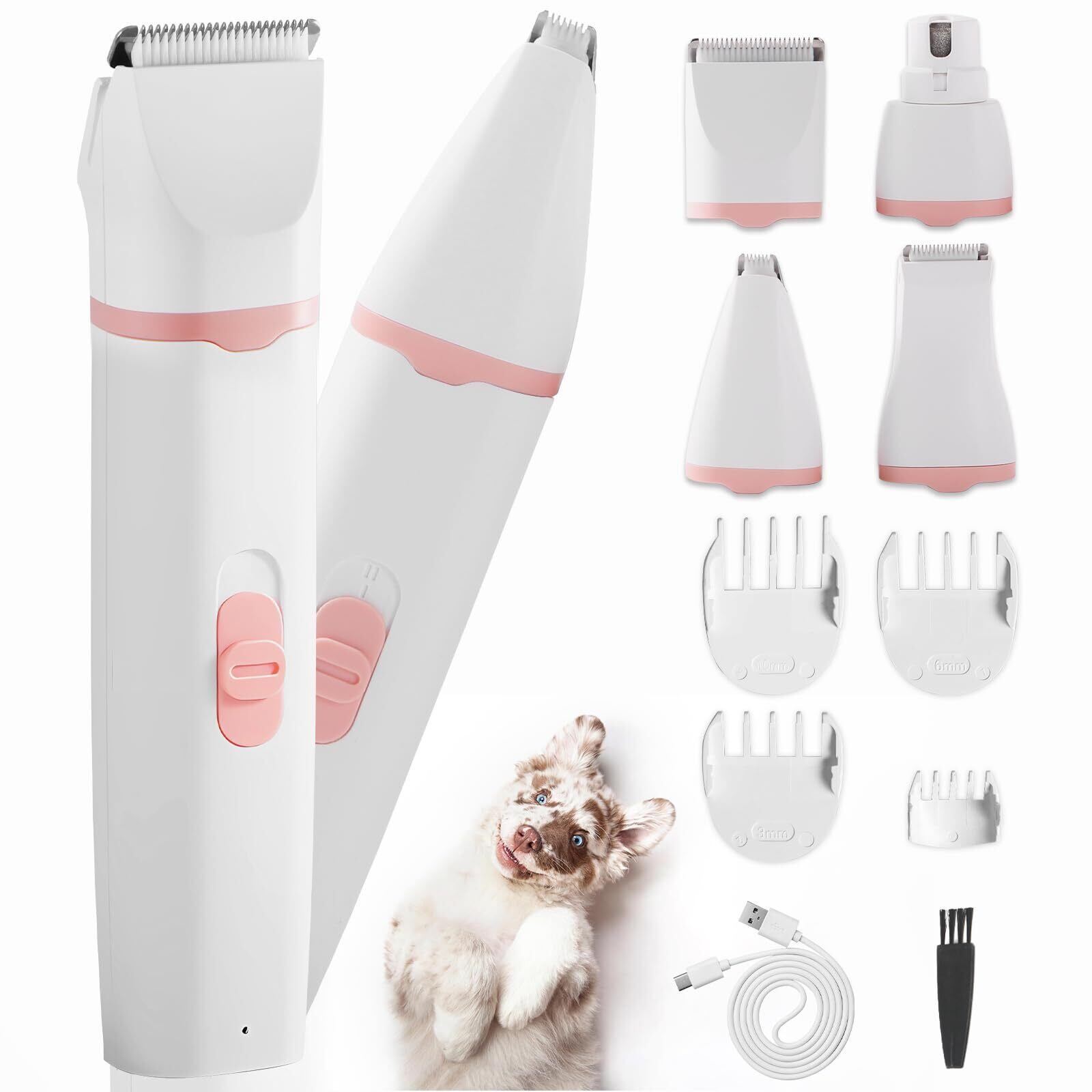 Paerduo犬用バリカン 多機能 4in1ペット用バリカン 2段階スピード調整 猫 バリカン 低騒音 足裏 爪 耳裏 顔回り お尻 全身カット可能 USB充電式 ペット用グルーミングセット 初心者 プロ用 業務用 犬/猫/小動物に対応 (ピンク)