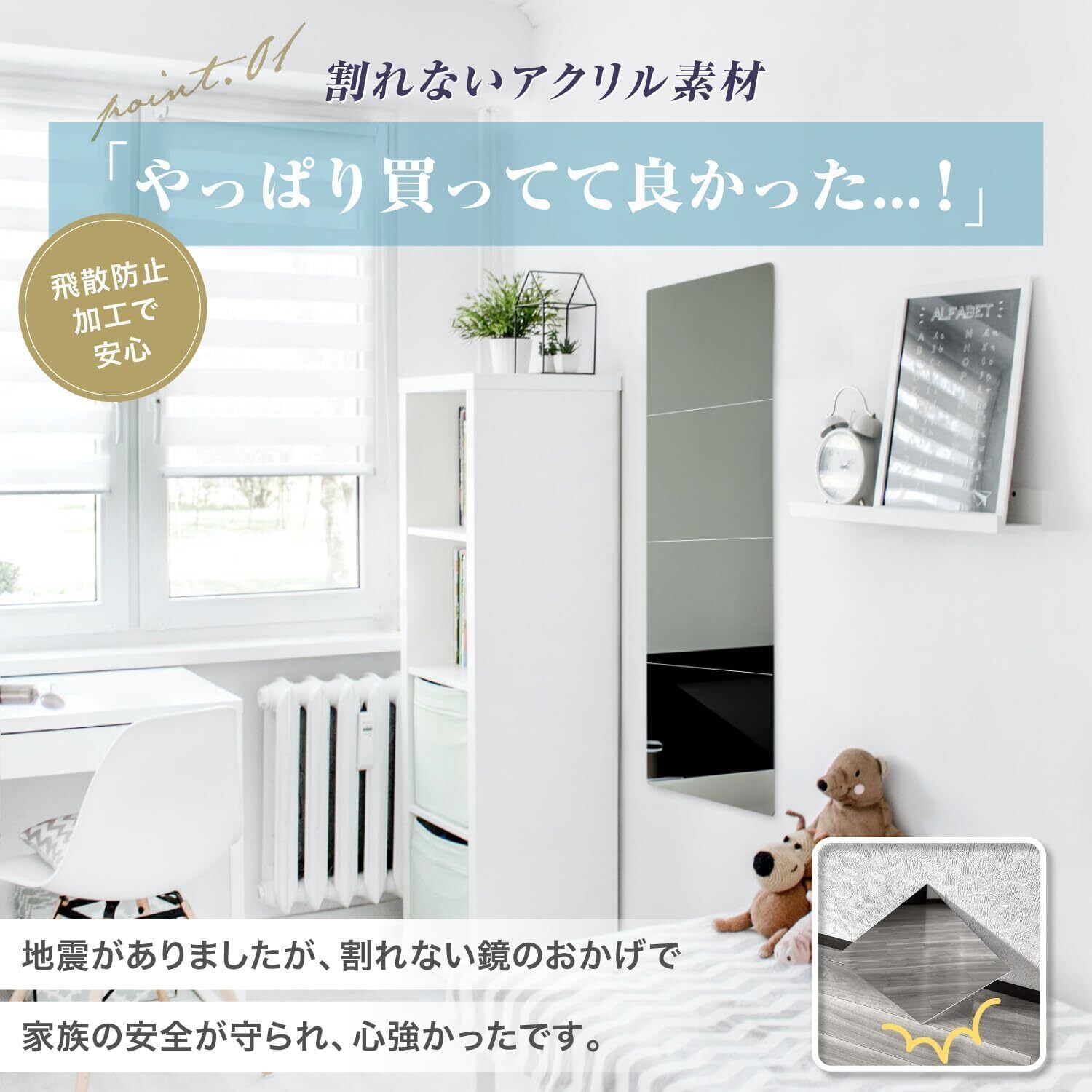 BOOMIE【どこでも貼れる割れない鏡】ドアの裏やクローゼットにも 鏡 全身鏡 姿見鏡 壁掛け ミラー 壁掛け 浴室 (30×30cm 4枚セット)