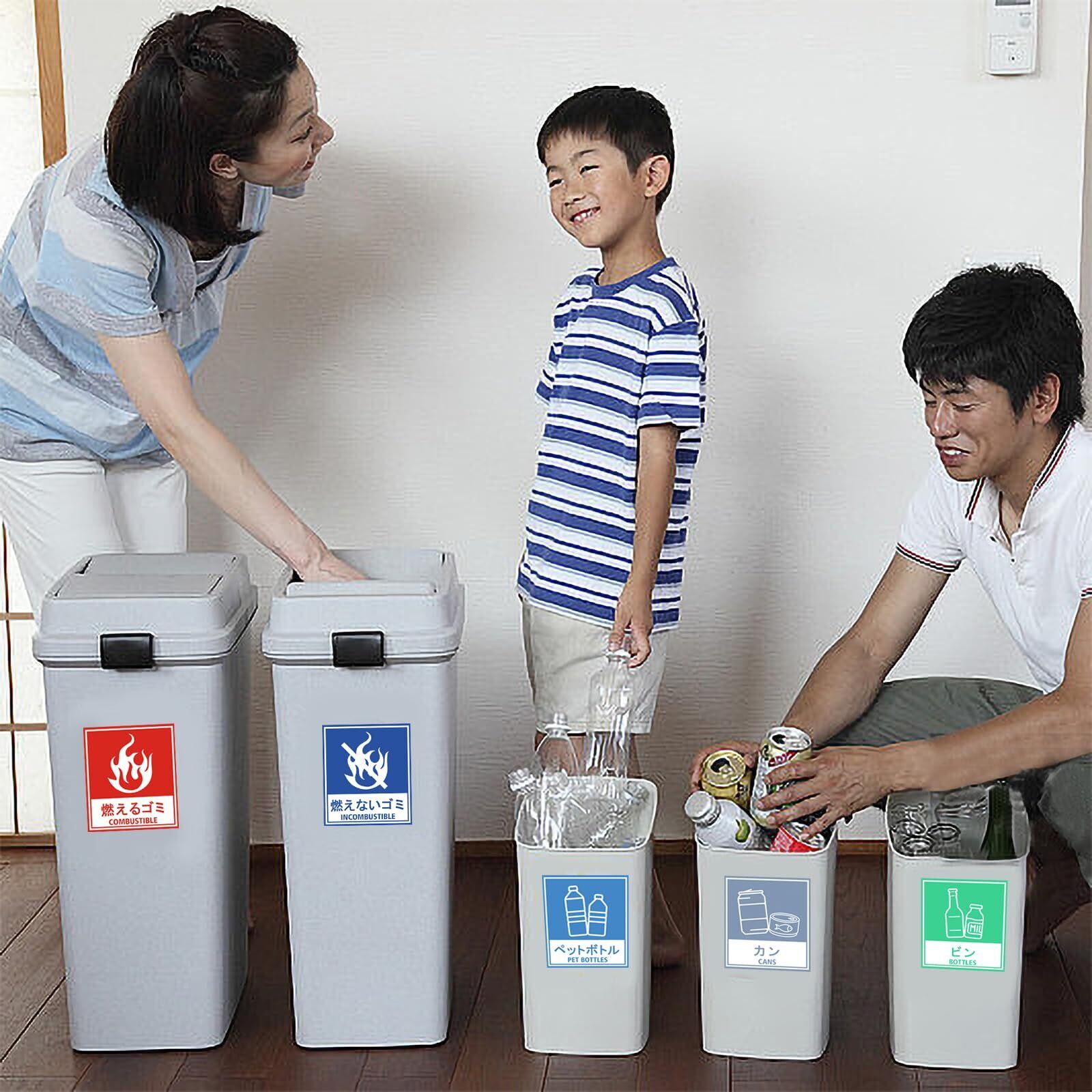ROSIT ゴミ分別ステッカー シール 6枚セット11.5cmx10cm 屋外利用可能 耐候防水性 (燃えるゴミ、燃えないゴミ、ビン、カン、ペットボトル、プラスチック)