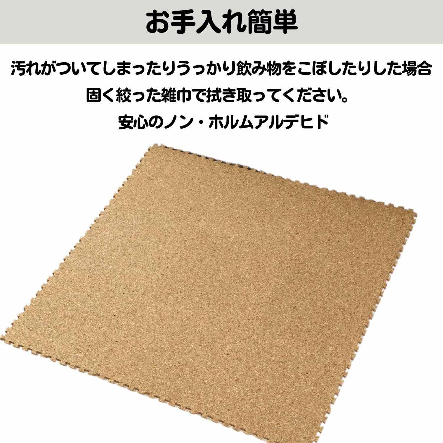 ・一年中快適に過ごせる天然素材を使用したコルクマット。・はめ込むだけの簡単設置。・組み合わせ 自由自在。・衝撃吸収、防音効果(遮音等級 特級取得商品(ΔLL-3等級))、床の傷防止に適しています。・お子さまにも安心のノンホルムアルデヒド・床の冷たさを防ぐ保温性 ・カッターやはさみで簡単にカット!レイアウト自由自在。・フローリングに比べて滑りにくくなるためペットの滑り防止にも役立ちます。 ・汚れた時はさっと一拭き、お手入れ簡単。
