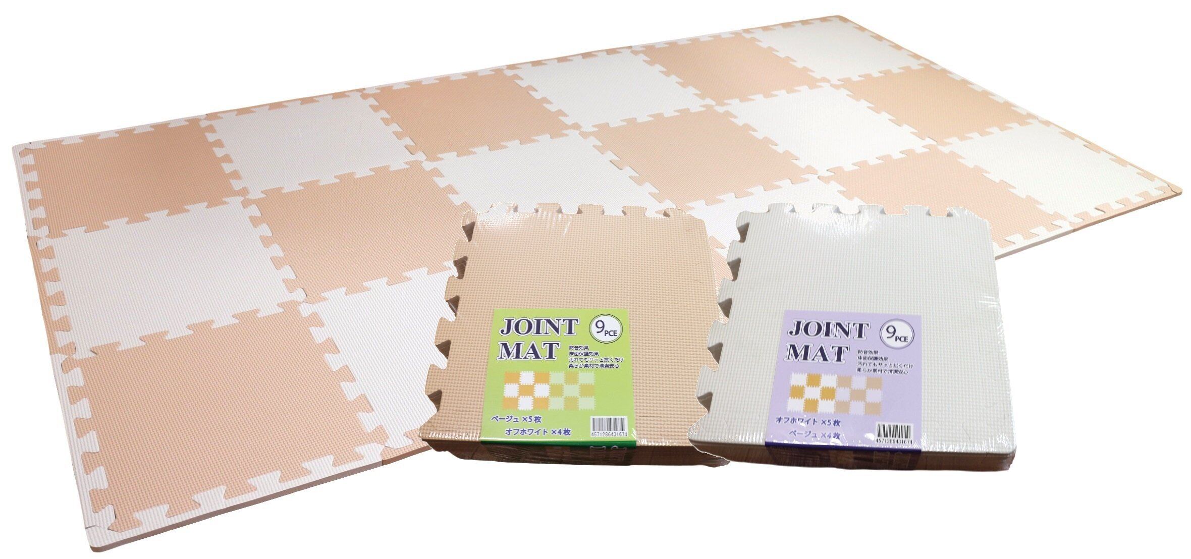 trust map 18枚組 ジョイントマット 32cm 厚み10mm フチ付き 汚れに強いEVA素材 3カラー (ホワイト×ベージュ(フチ付き))