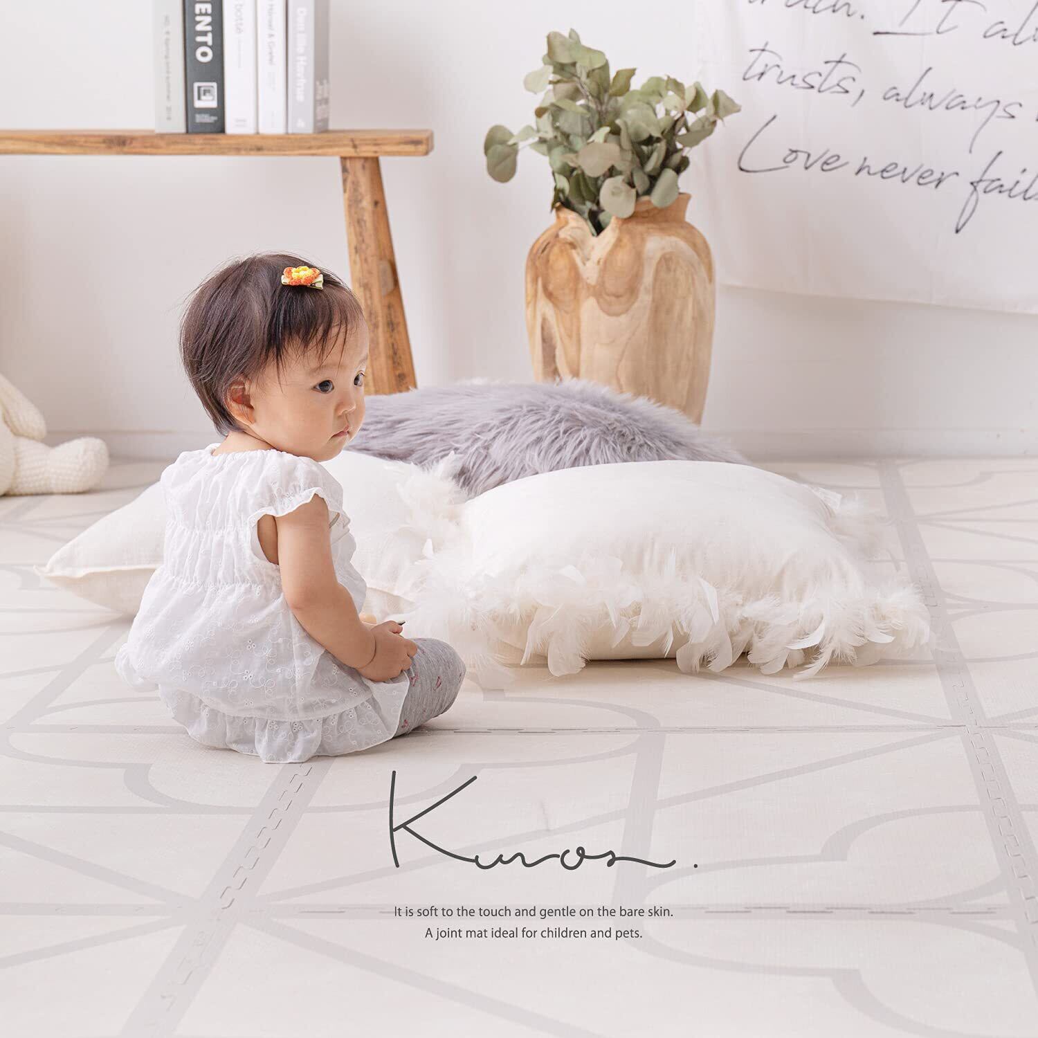 おしゃれを諦めたくないけどジョイントマットを使いたい。そんな人のための大人可愛いジョイントマットが登場。組み合わせによって模様が変わるため、お好みの雰囲気をお楽しみいただけます。 1セット9枚で約180cm×180cm、正方形ラグ1枚分です。カッターナイフでカットすることができるので、重たい家具や柱などを避けてお部屋に敷き詰めることができます。綺麗に仕上がるサイドパーツ付きで部屋の端や角でもピッタリ敷き詰められます。