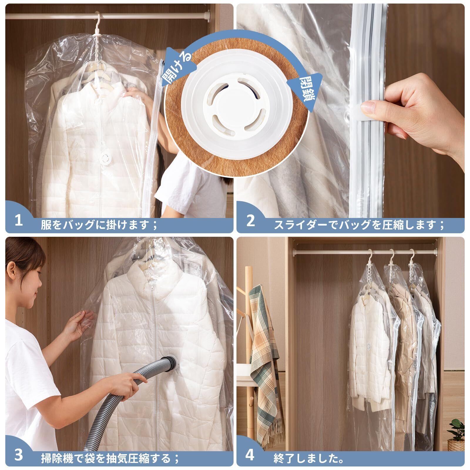 収納に大活躍:季節に合わない服がクローゼットのスペースをを占有する場合に、弊社の吊るせる圧縮袋を使用して、コートやジャケットなど入れて圧縮した後、最大80%のスペースを節約できます。また、高品質のPAとPE材質で作られるので、柔らかくて破れにくくて、再利用可能です