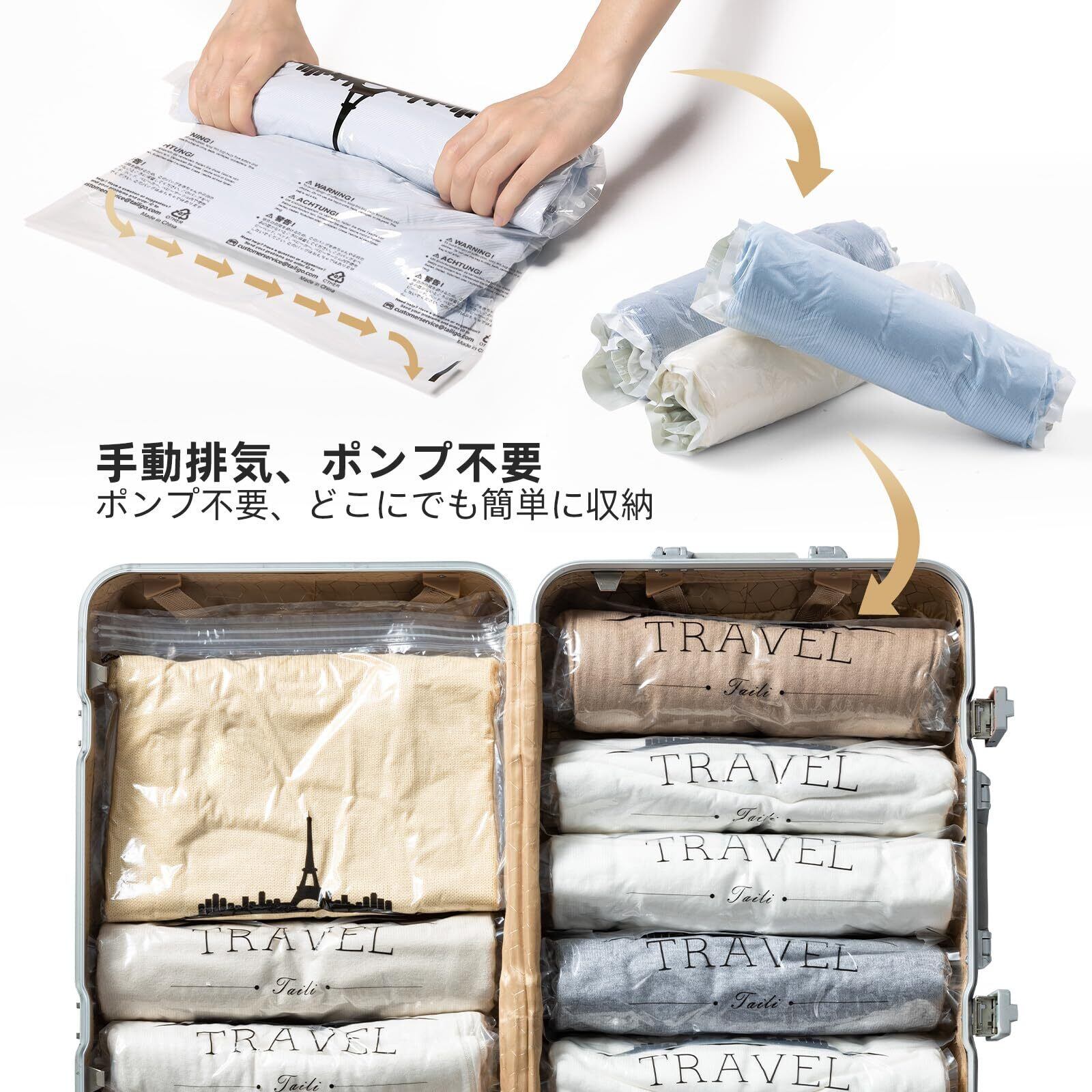 TAILI 圧縮袋 旅行 手巻き 衣類 圧縮ポーチ 真空バッグ 掃除機不要トラベルグッズ 便利 海外 洋服収納 出張 修学 家族旅行 透明 (M4枚/L4枚/LL4枚)
