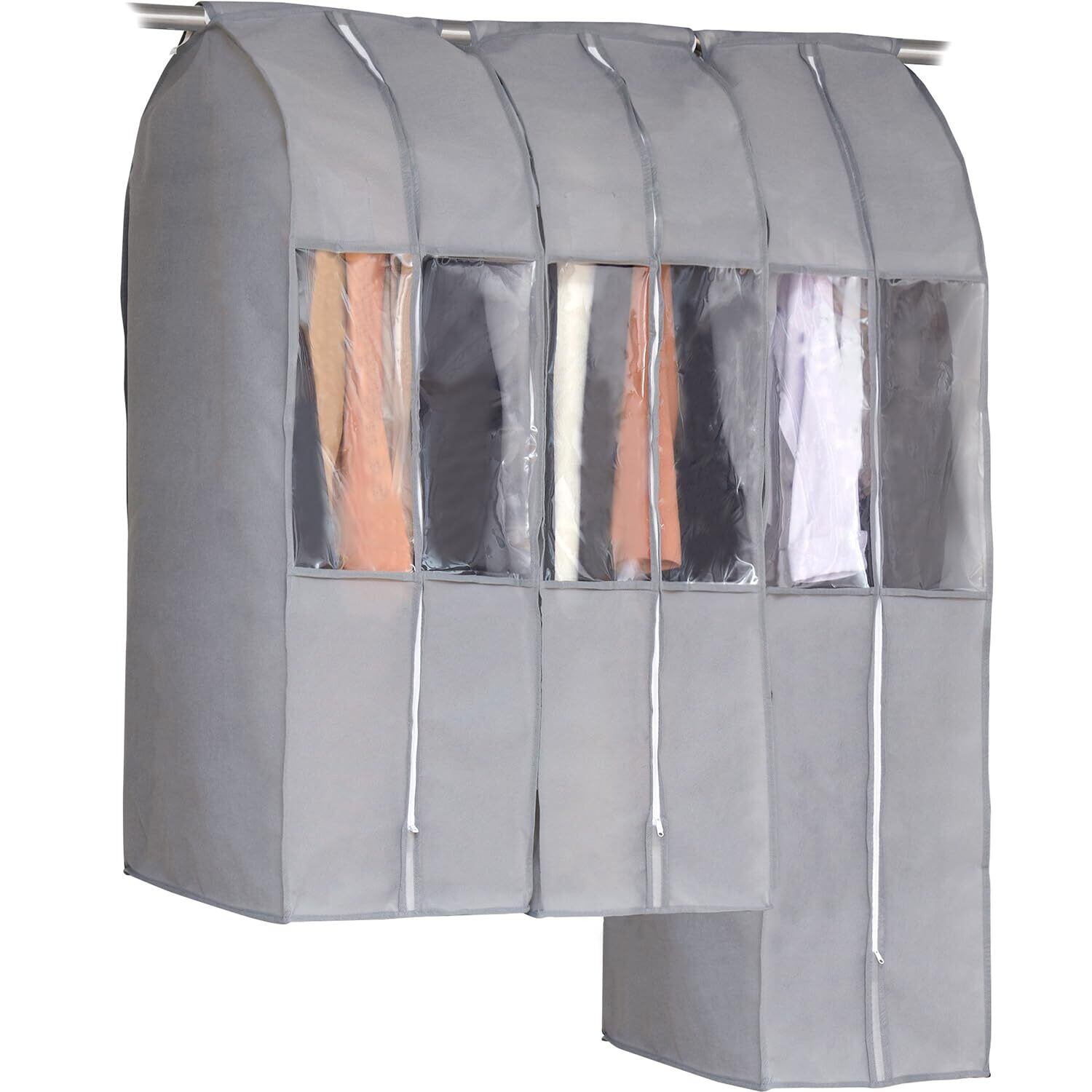 アストロ 衣類カバー グレー マチ付き ワイド 3枚組 (ショートサイズ2枚+ロングサイズ1枚) ジャケット コート 保管 洋服カバー 不織布 衣装カバー スーツカバー クローゼット 吊り下げ収納 透明窓 防虫剤ポケット付き 底閉じタイプ まとめて収納 600-21