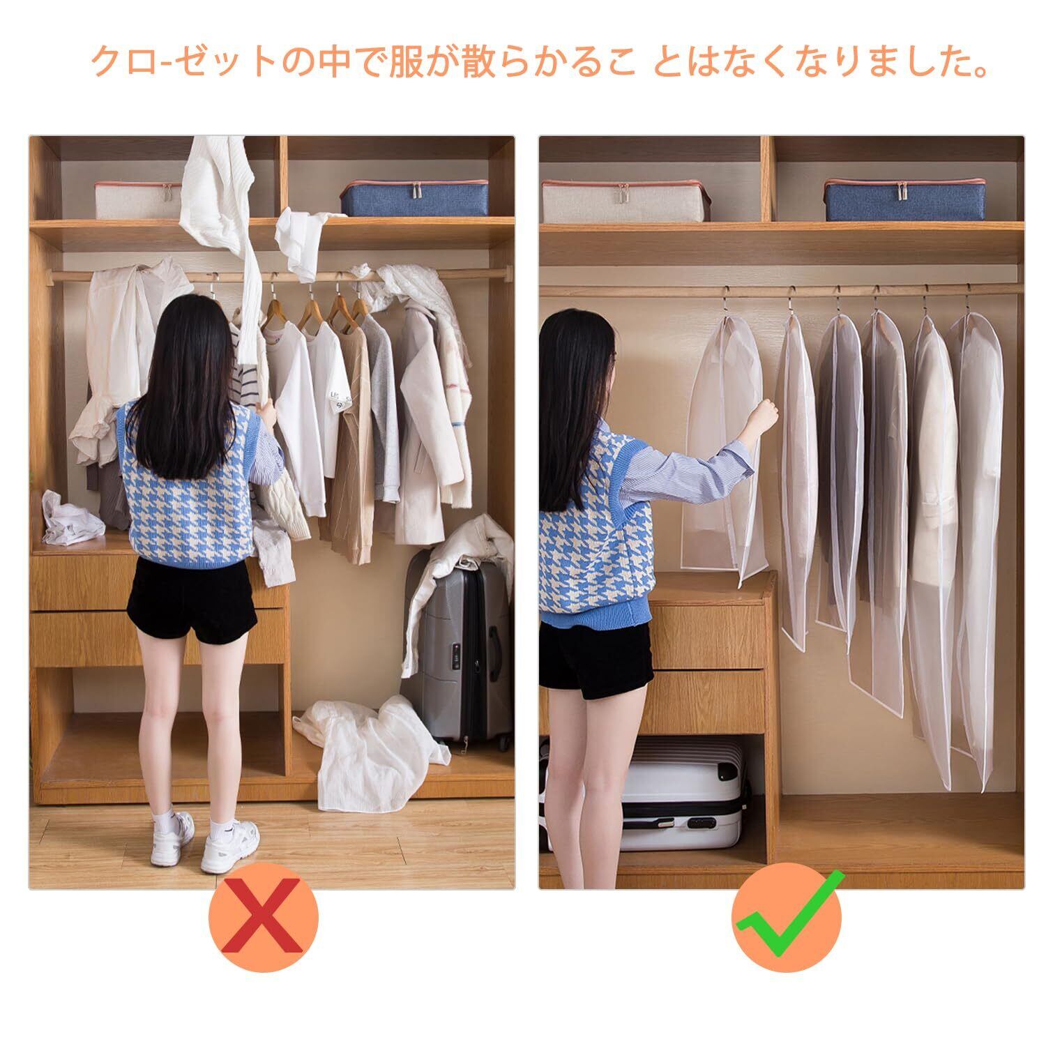 【衣服の保護】季節の衣服や貴重な衣服を保護し、整理整頓し、ワードローブの収納スペースを節約します;半透明の素材は衣服を見つけて保管するのが簡単です;ほこり/湿気/虫が衣服を損傷するのを効果的に防ぎます;特にでの使用に適しています梅雨。