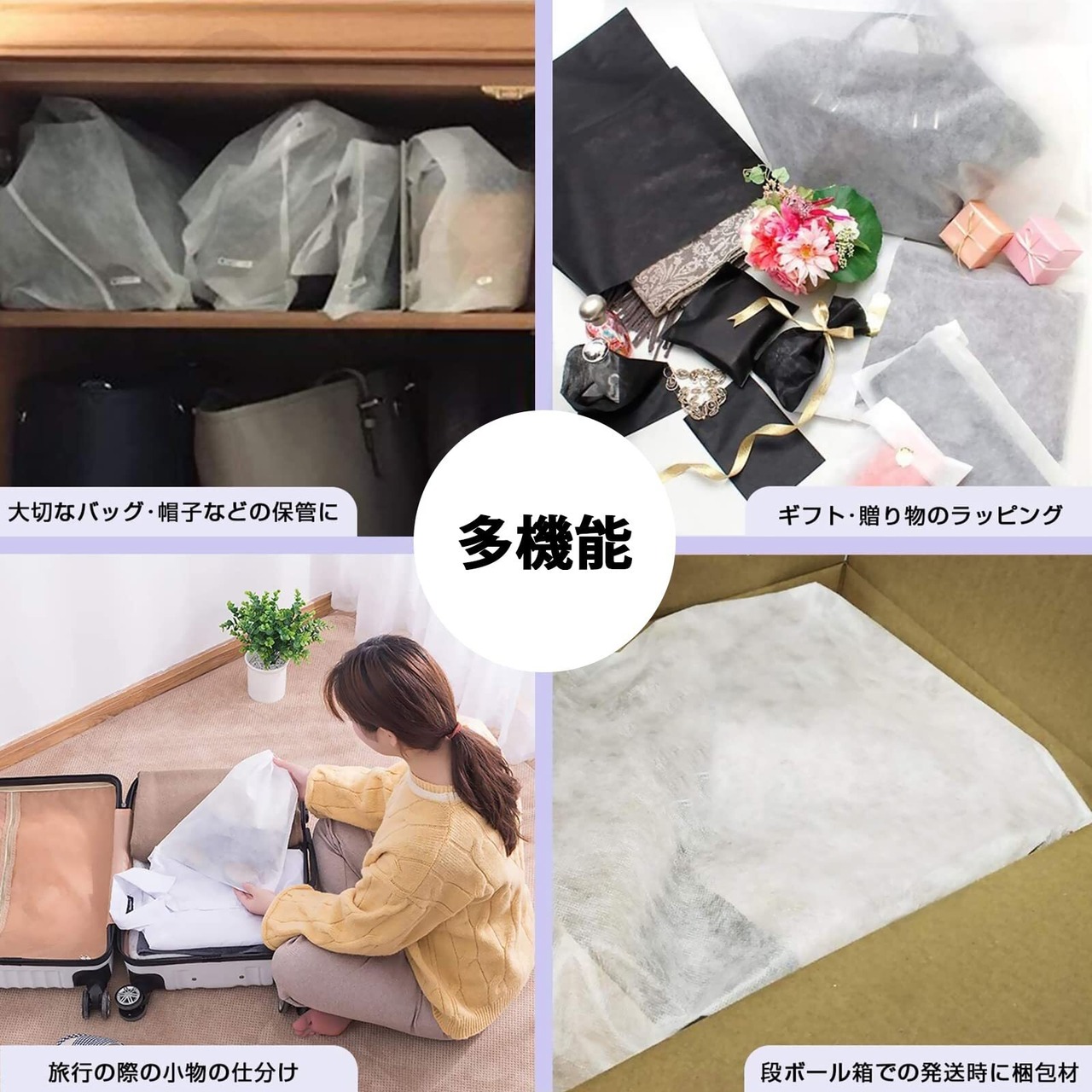 不織布 袋 HIMOMO バッグ保存袋 不織布サイズ 特大(高さ60X長さ90cm)10枚入り ふんわりバッグや鞄収納保存袋 大きめ ほこりよけ 通気性優しい不織布ラッピング袋 長辺開口部