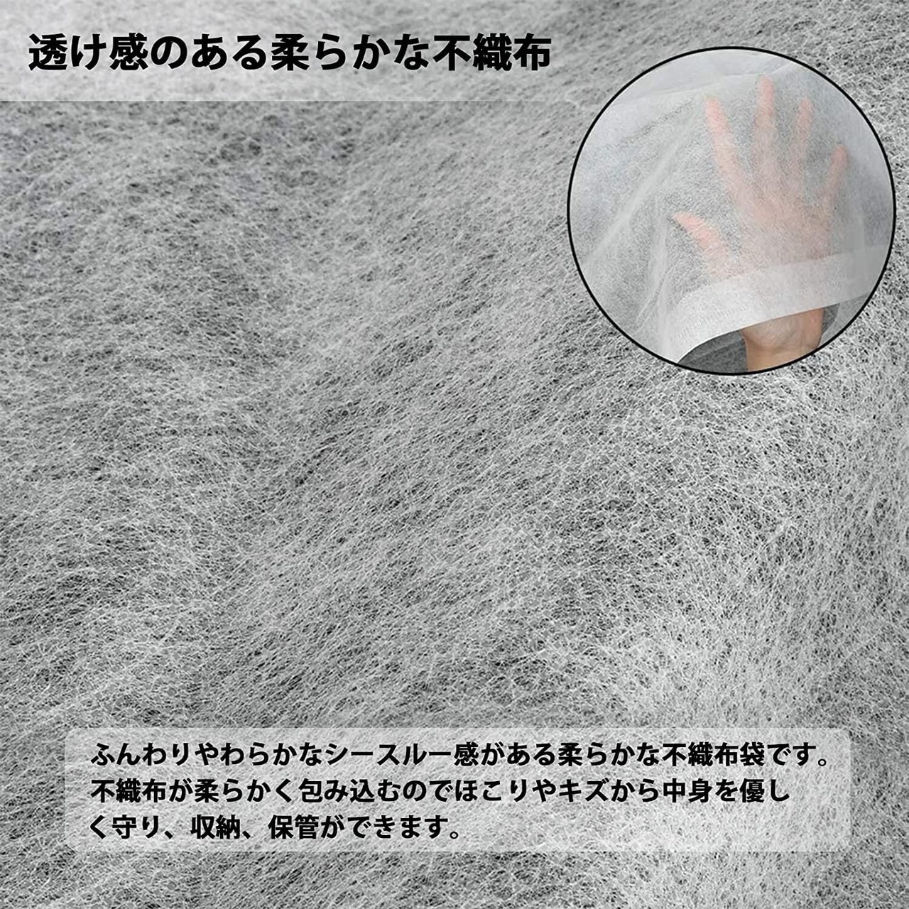 不織布 保存袋通気性の良い素材ですので、風通しがありつつホコリや傷から防いでくれるし、バックやらクツやら、大切なものを優しく守ります。