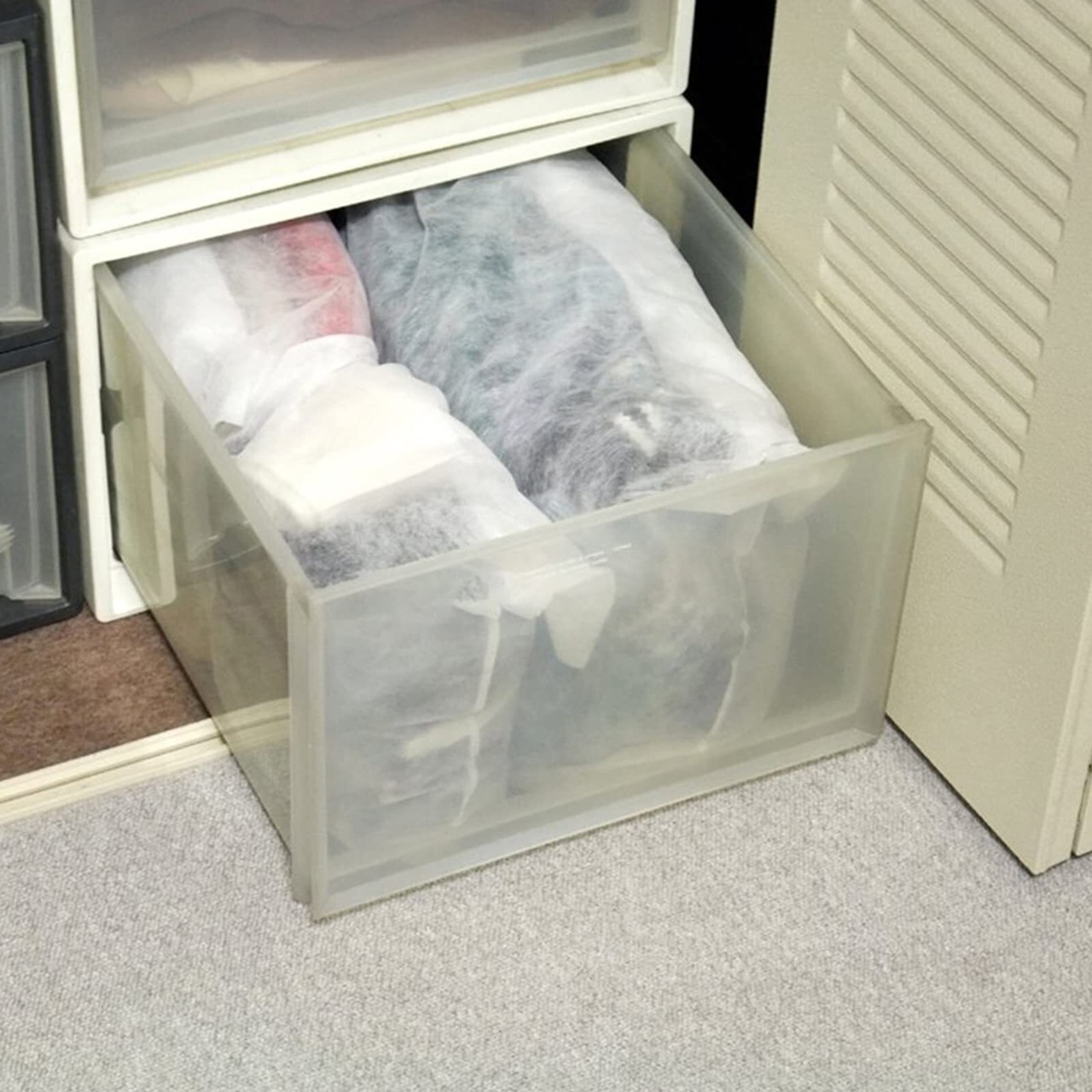 バッグ保存袋 不織布サイズが大きくて、コートやジャケット、ダウンなどの衣類を畳んで収納するのにぴったり。大きめ通勤バッグや旅行用バッグ、アウトドア用アイテムもすっぽり