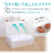 【大きく開いて入れやすい】:ダブルスライダーでコの字型に大きく開くので、羽毛布団の出し入れスムーズ。