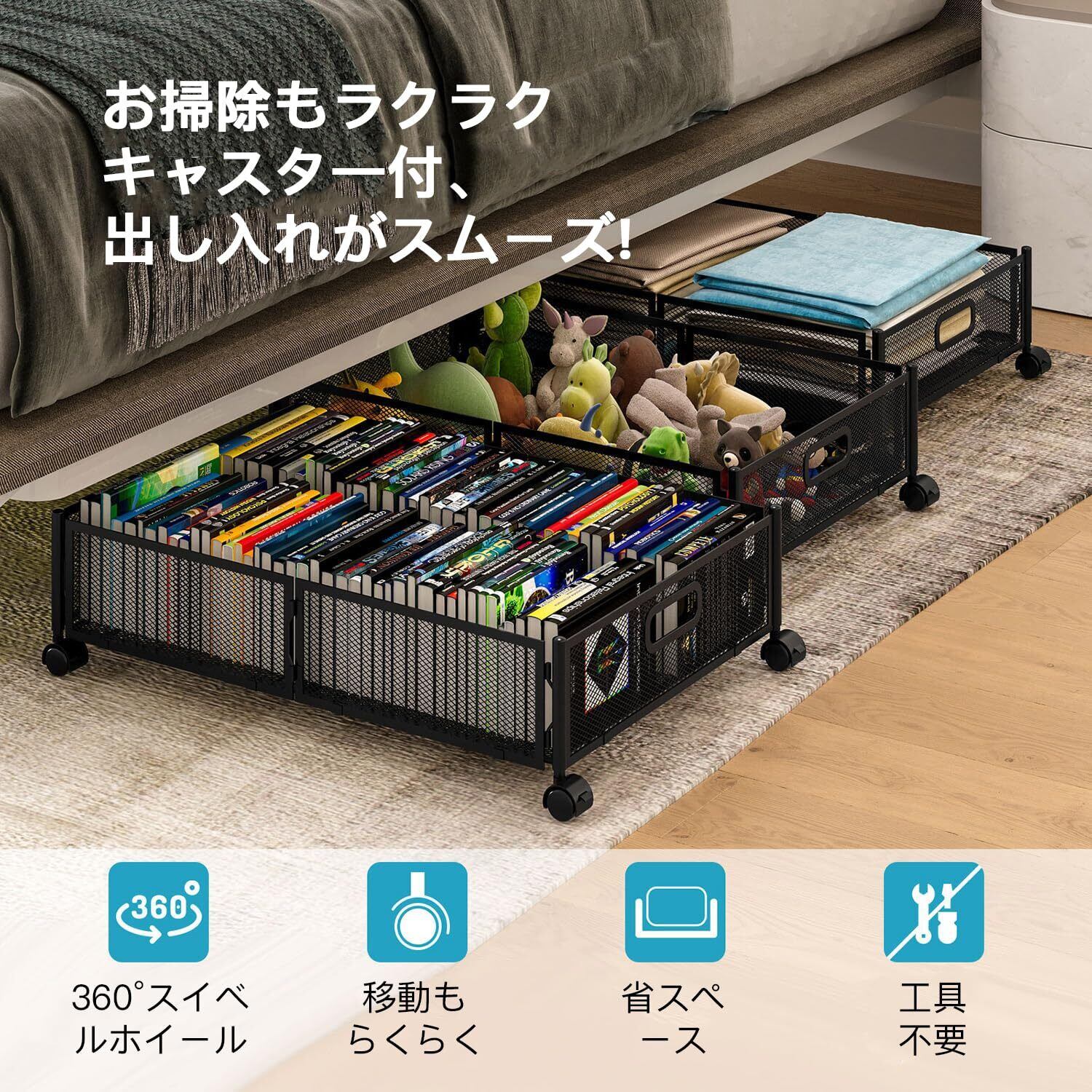 ベッド下収納 ベッド下収納 キャスター付き 服収納ボックス 衣類収納 折り畳み 取り付け簡単 大容量 衣替え 布団 毛布 ベッド下物入れ 省スペース 押したり引いたりできる (ブラック, 2個セット)