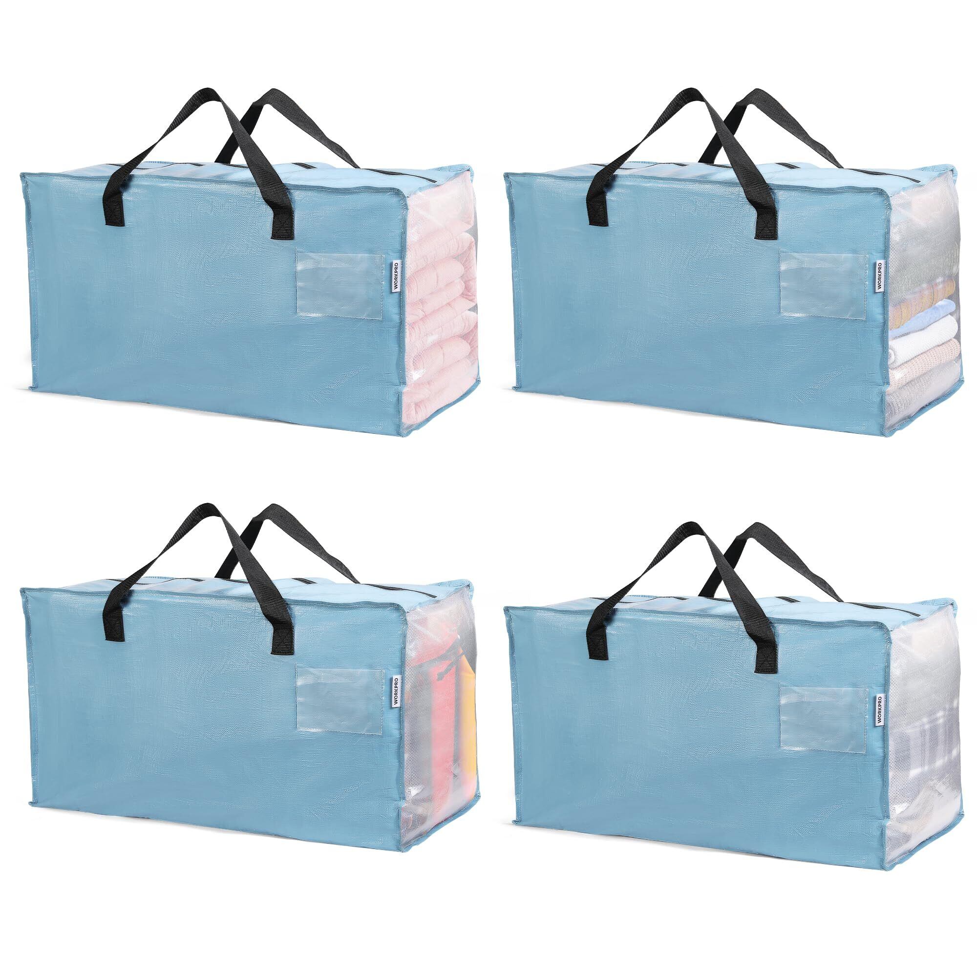 WORKPRO 布団収納バッグ 引越しバッグ 大型収納袋 大型収納カバン 100L大容量 73*36*40CM 耐荷重22.7KG 背負える仕様 持ち手付き 布団収納袋 衣類収納袋 透明窓 防塵 防水 引っ越し キャンプ 旅行 収納用 4枚セット