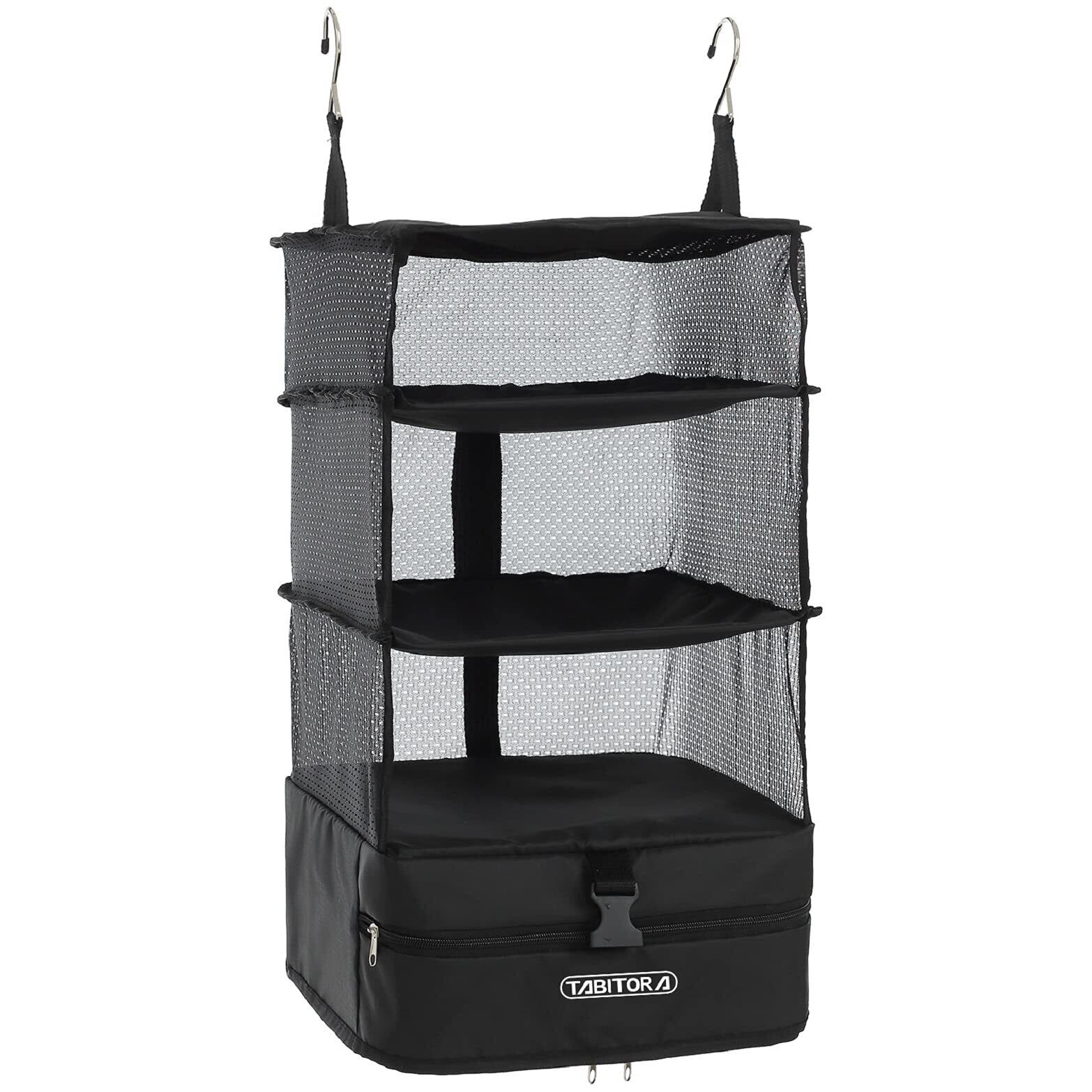 TABITORA(タビトラ) クローゼット吊り下げ収納 インナーバッグ 衣類ラック 収納 旅行 出張 クローゼット 収納ボックス 吊り下げ 省スペース 大容量 衣装ケース 4段 取付簡単 折り畳み式 ブラック L