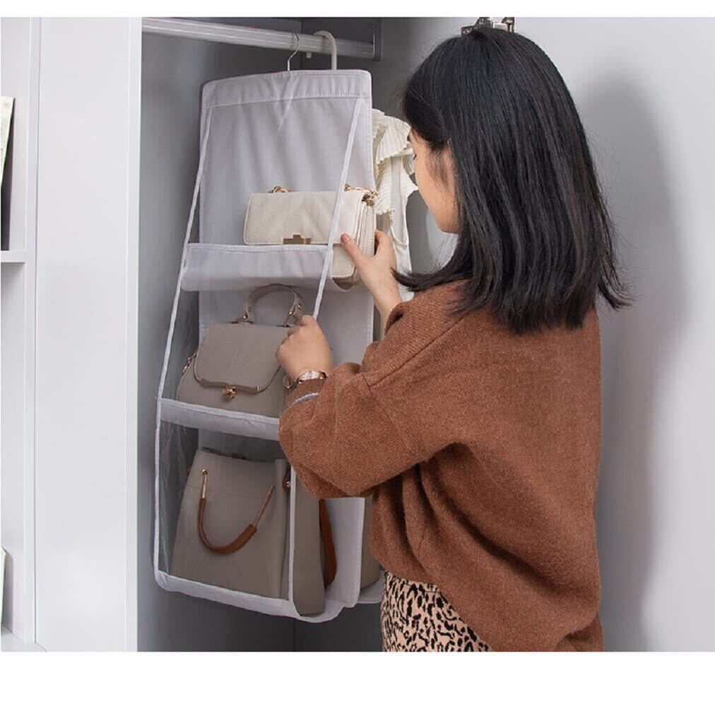 ドアまたは壁に取り付けられるポケット、6つ付き大容量のバック収納ハンガーです、ハンドバッグなど、散らかりやすいバッグをすっきり収納できる便利な収納ホルダーです!