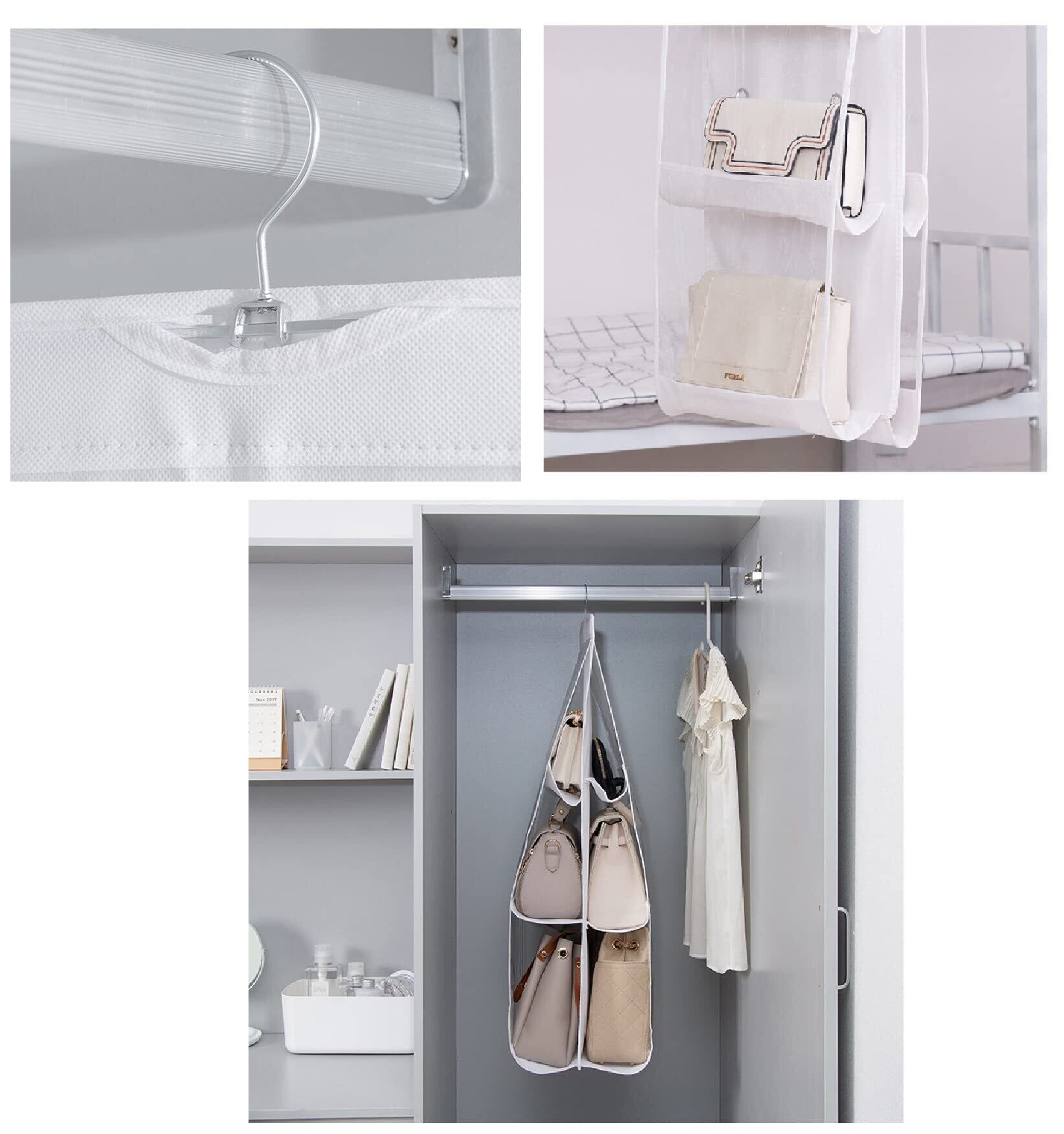 【スッキリ収納】:ハンドバッグなど、散らかりやすいバッグをすっきり収納できる便利な収納ホルダーです! ハンガーで、クローゼットや衣装フックに吊り下げて、服と一緒に管理できます。