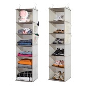 YRCBEHFU 吊り下げ収納 6段 衣類ラック 【竹製天然版】 クローゼット 収納吊り下げ 2件 大容量 帽子/鞄 収納/旅行/出張 取付簡単 折り畳み式 30x30x120cm (2#6段、ベージュ)