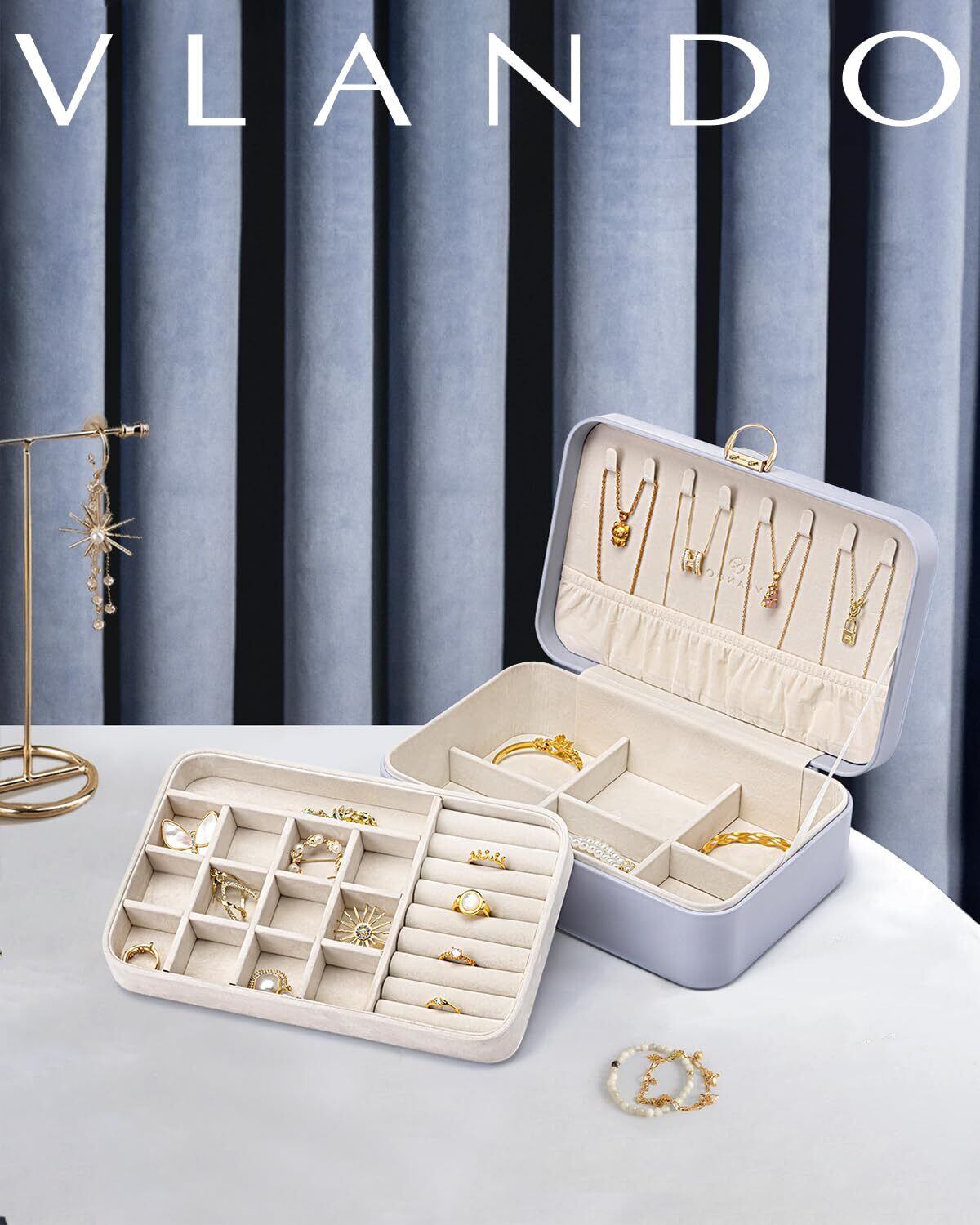 【洗練されたデザイン】Vlando二段式ジュエリーボックスはあなたのコレクションを美しく収納します。人工皮革を使用した柔らかな質感と上品なスタイリッシュさが特徴です。インテリアにもなじむ洗練された外観は、ドレッサーやサイドテーブルに置いても高級感を演出します。