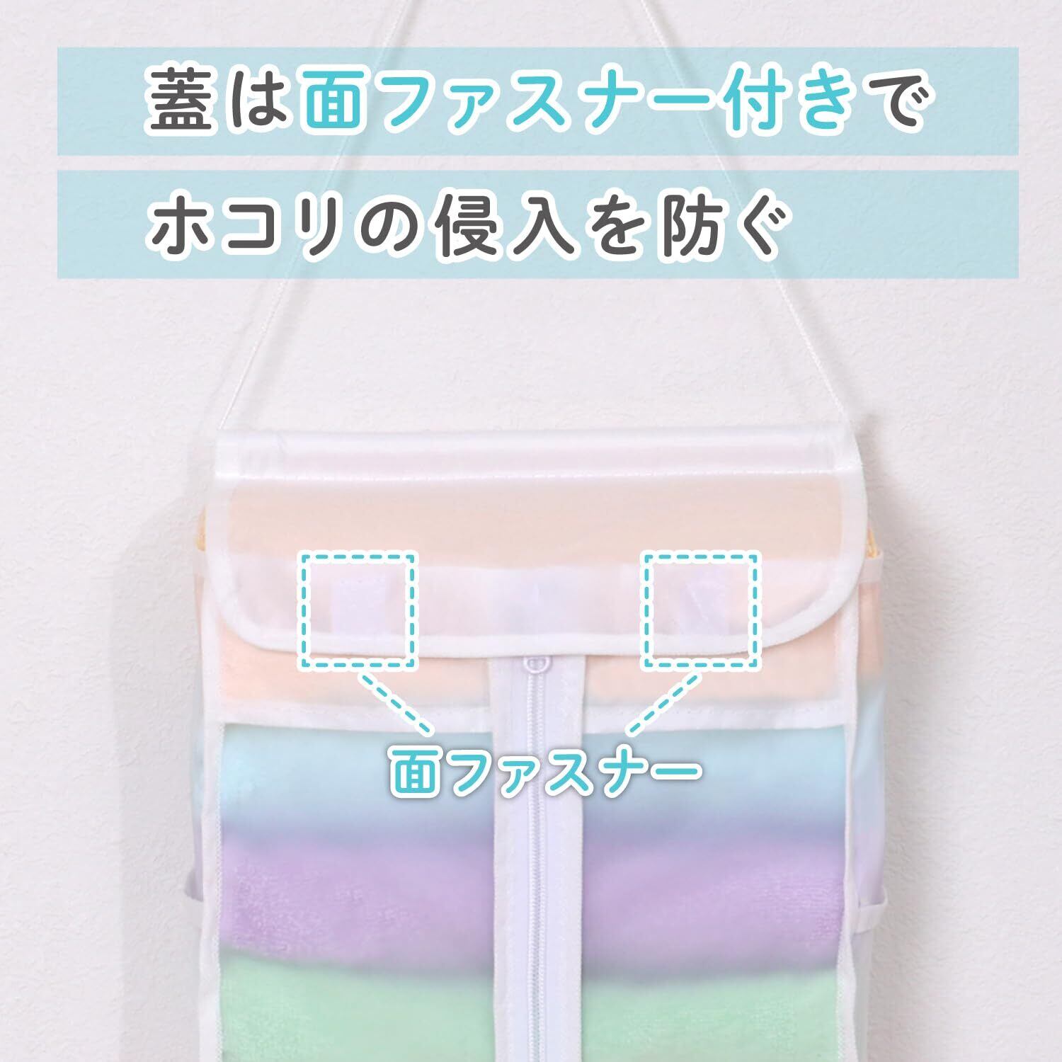 アストロ タオル収納ケース ホワイト 半透明 タオルストッカー 壁掛け 吊り下げ フェイスタオル入れ 保管ケース タオルホルダー 水に強い お手入れしやすい ポケット付き 110-03