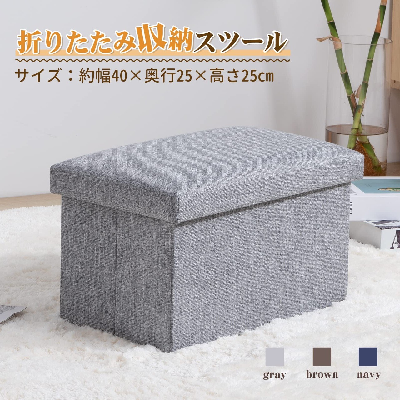 【折りたたみ収納スツール】約幅40×奥行25×高さ25cm グレー