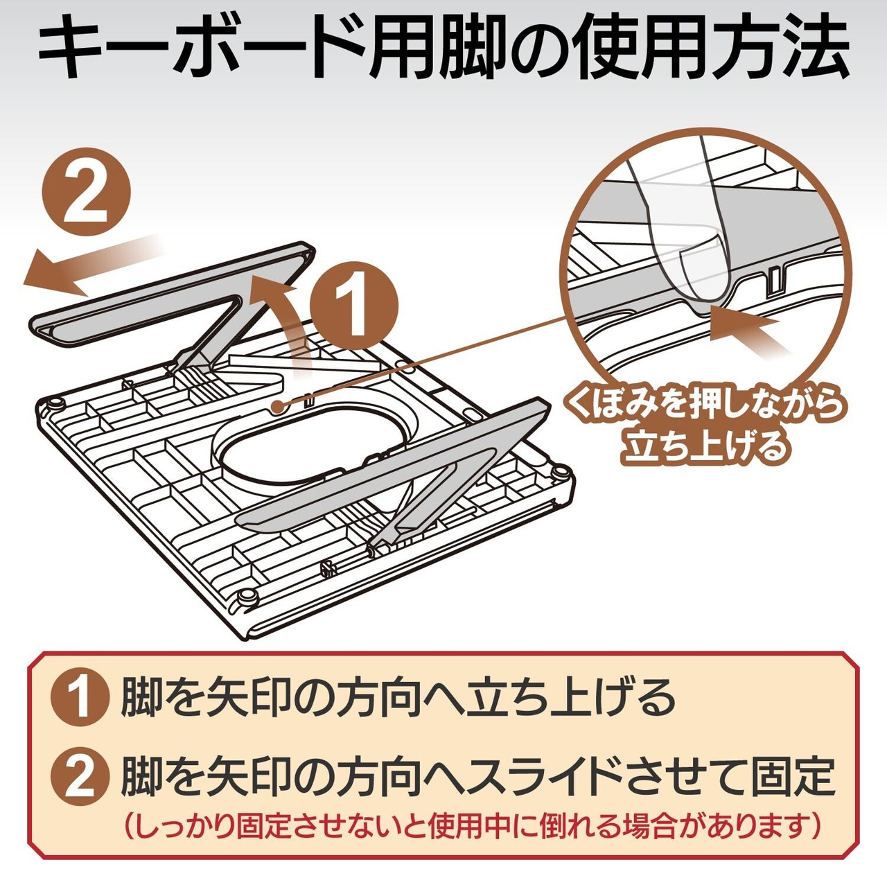 ■ 高さアップ脚を利用すればノートPCスタンドの下のスペースを有効活用でき、ノートPCスタンドの下のスペースにキーボードを収納することができます。