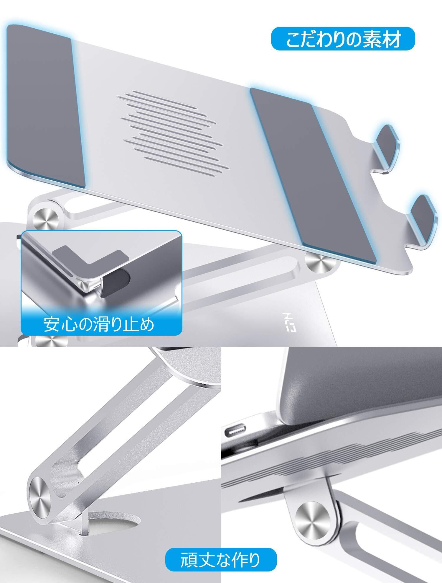EPN ノートパソコンスタンド 折りたたみ式 無段階調整 放熱 滑り止め付き 16インチ以下に対応 シルバー