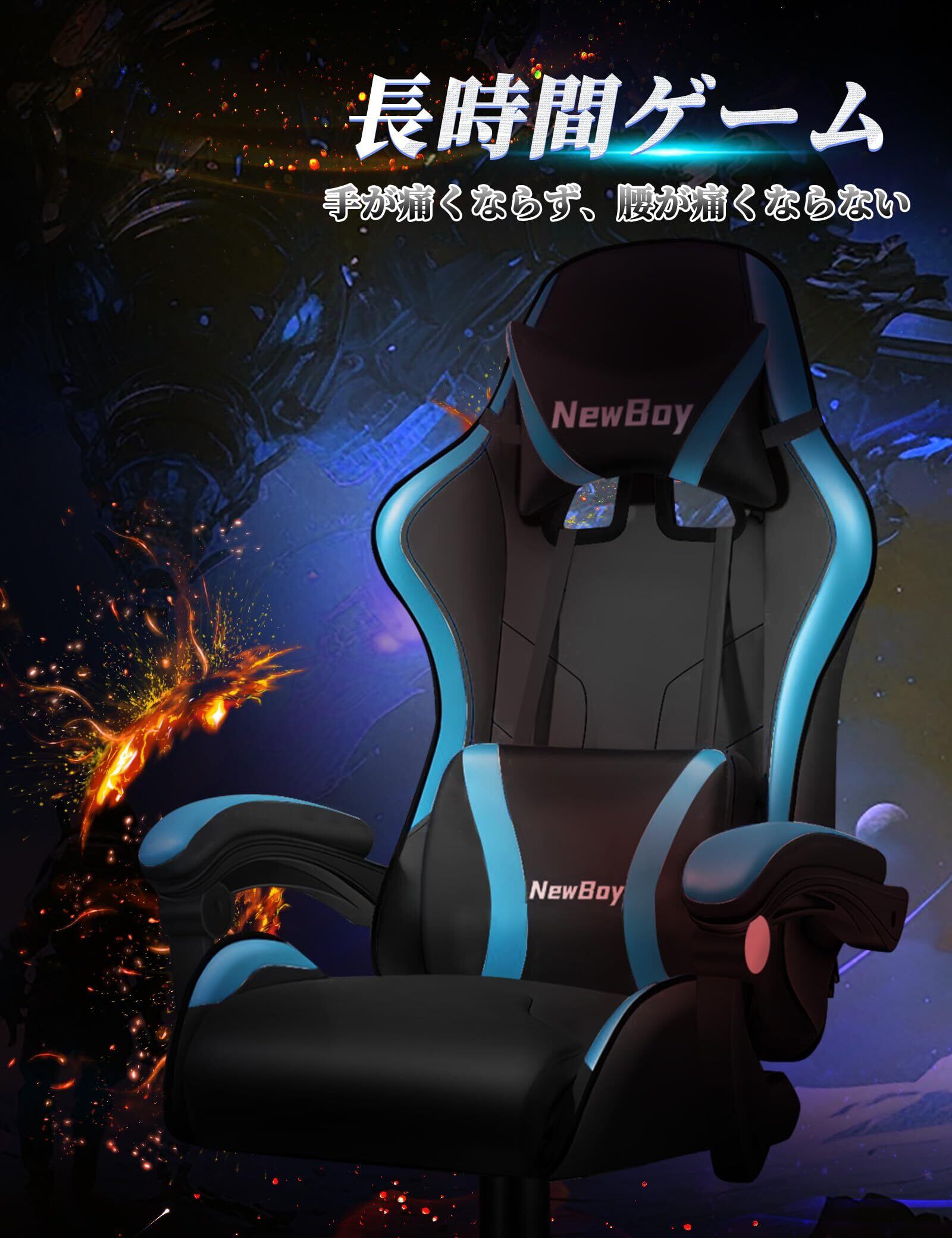 PikPok ゲーミングチェア pcチェア 椅子 デスクチェア ゲーム用チェア リクライニング パソコンチェア ハイバック ヘッドレスト ランバーサポート ひじ掛け付き 高さ調整機能 PUレザー (スポーツカー 黒と青)