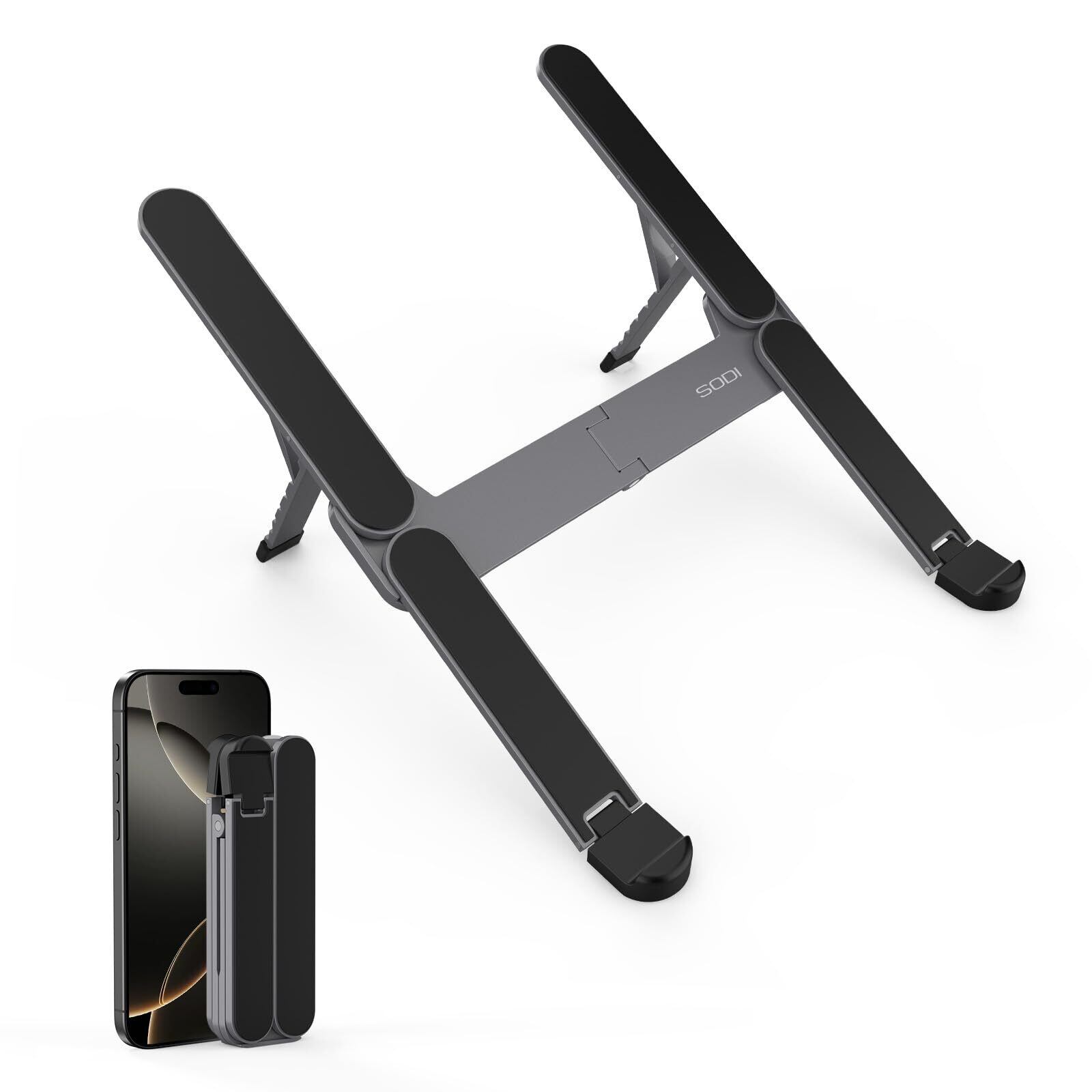 【革新的・極コンパクト】SODI ノートパソコンスタンド PCスタンド タブレットスタンド 折りたたみ式 超軽量 6段階高さ 角度調整 人間工学 腰痛 猫背 姿勢改善 laptop stand 収納バッグ 持ち運び 日本語取扱説明書