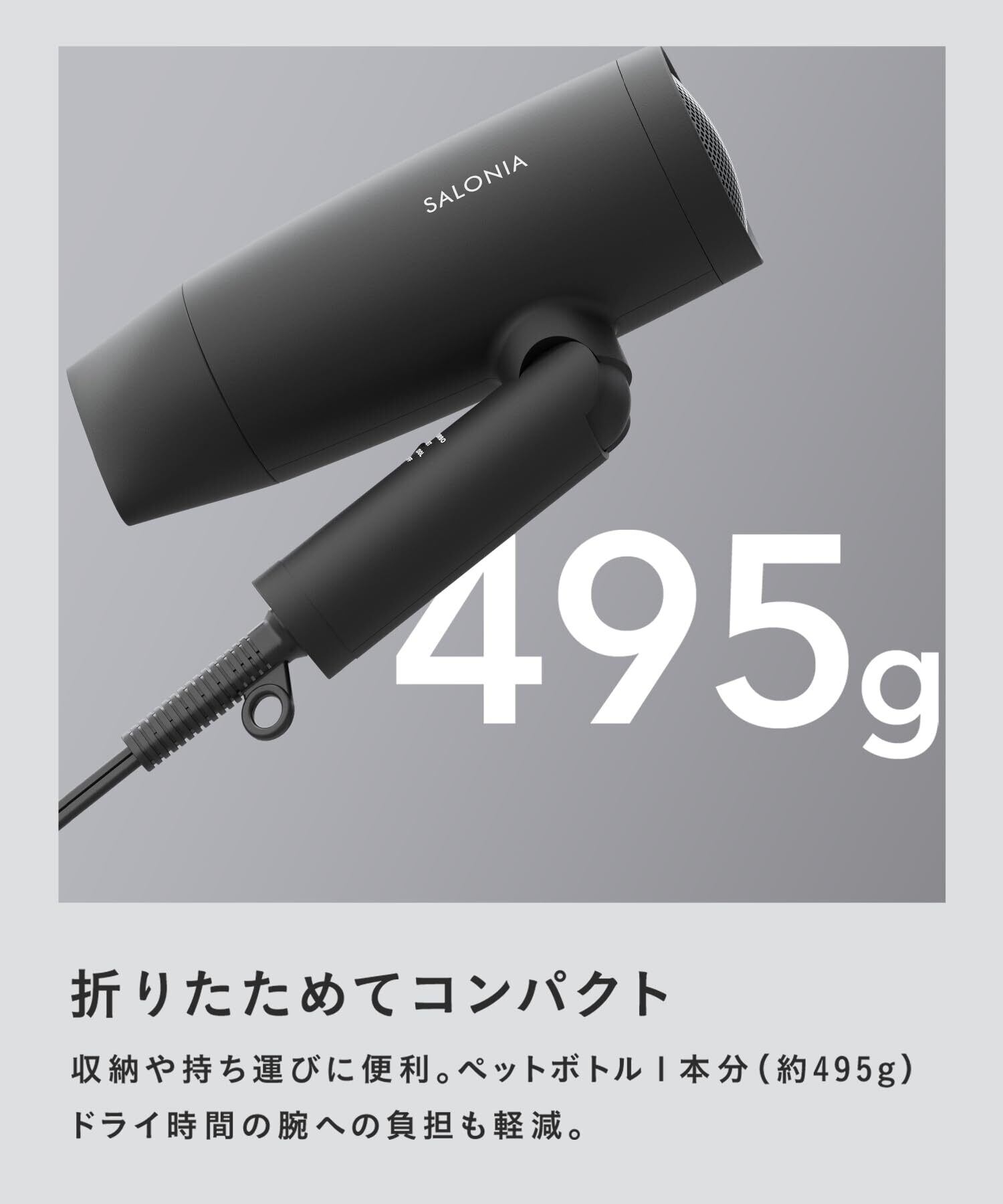 【ペットボトル約1本分の軽さ】時間ドライの負担を軽減して収納にも便利なコンパクト設計