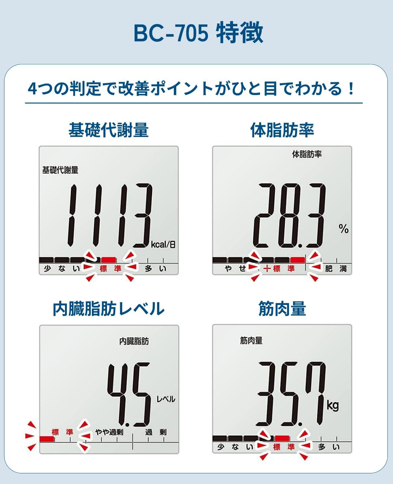 タニタ 体重計 体組成計 BC-705N【体脂肪率/内臓脂肪レベル/筋肉量/基礎代謝量/体内年齢/BMI/日本製/乗るピタ】